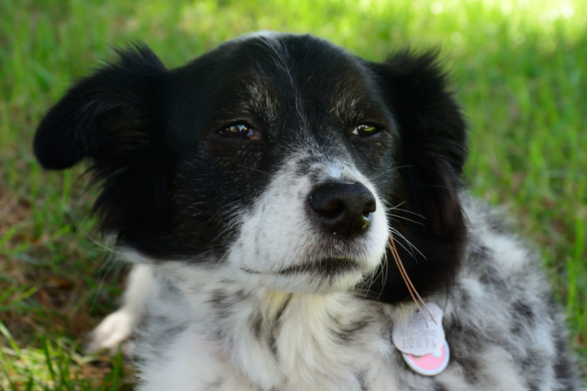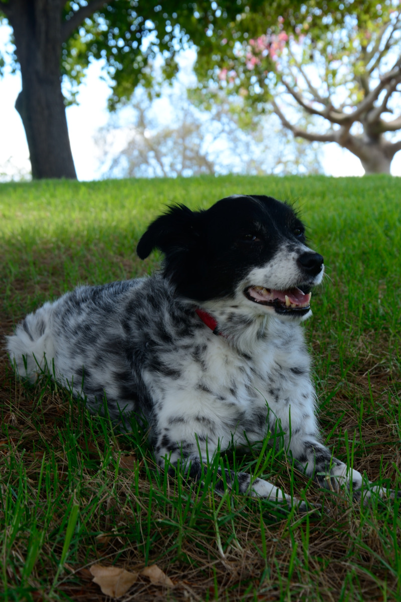 Sophie still had one surprise for us, though. When I got to Mike’s work, I expected her to be laying around, barely moving, just as she had left with Mike that morning. She heard me come in and ran out of Mike’s office talking to me in her normal way and jumping all over me, out of her mind excited to see me! I was stunned, and so was Mike. He had given her some fluids throughout the day and she responded so well to them that neither of us had the heart to put her down that night. We just couldn’t when she was acting like herself. So we took her home. We knew that at best we had days, probably hours, so we rearranged our bedroom that night to put our mattress on the floor so we could have a Sophie sleepover without her having to jump on the bed. Mike got up early the next morning to go to his volunteer shift at the USO and he left me a note saying that she was energetic and bouncy on her walk that morning. When I got up to go to work, though, she was more lethargic and I got concerned. I knew – today would be the day we said goodbye. Mike came home from the USO early and we spent some time with her in the apartment, just laying with her and enjoying our last hours together. She got to the point where she started taking a deep breath every once in a while and Mike and I knew it was time. On our way to Mike’s work, we stopped at the park on our street that we went to almost every morning with her. She laid in the grass for a while and enjoyed watching the people walking on the path and the kids running in the park. Mike and I spent that whole day snapping pictures of her, as if we could just freeze time like a picture does. Every time I picked the camera up that day, I couldn’t see the viewfinder through my tears. I snapped and I snapped and I snapped. After about 30 minutes in the park, we left.