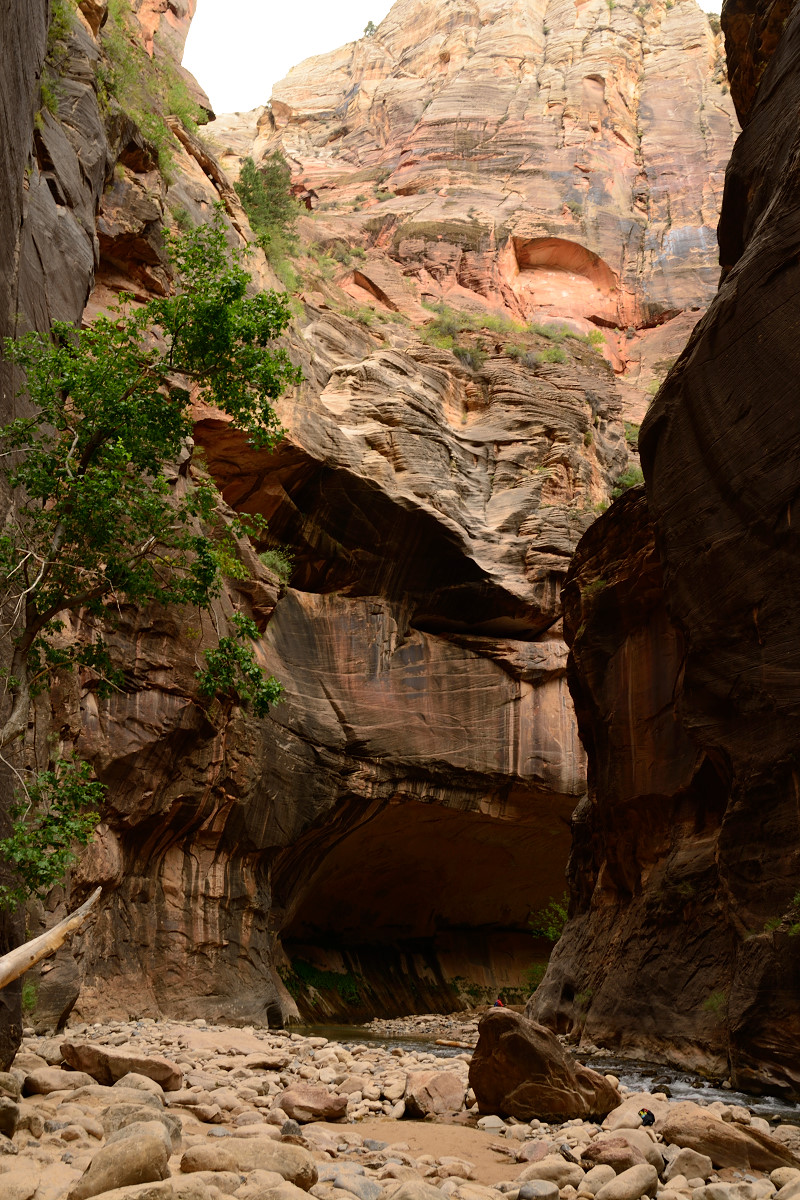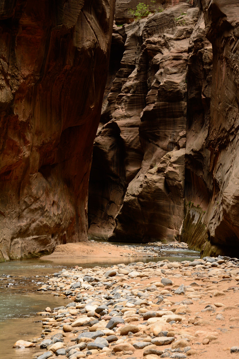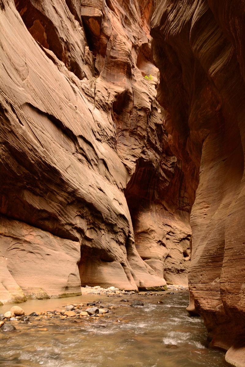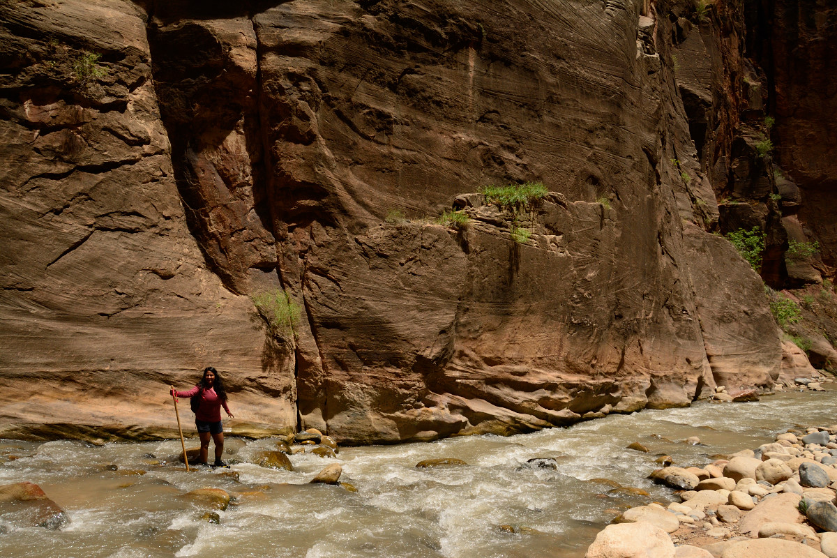 The Narrows is one of the most popular hikes in Zion. It’s different, though, because for most of the hike, you HIKE IN A RIVER. The Virgin River, to be exact. We decided on the bottom-up hike, which doesn’t require any special permits. We had also made a tentative goal of making it to the famed “Wall Street” section of The Narrows, which is about two miles in. Since the weather in Utah can be quite unpredictable (especially in the summer), the three of us agreed that if at any point any of us became uncomfortable or felt like the water was getting too deep, we would turn back. The hike is not only in a river, but there is not too much high ground since you’re hiking in a slot canyon.