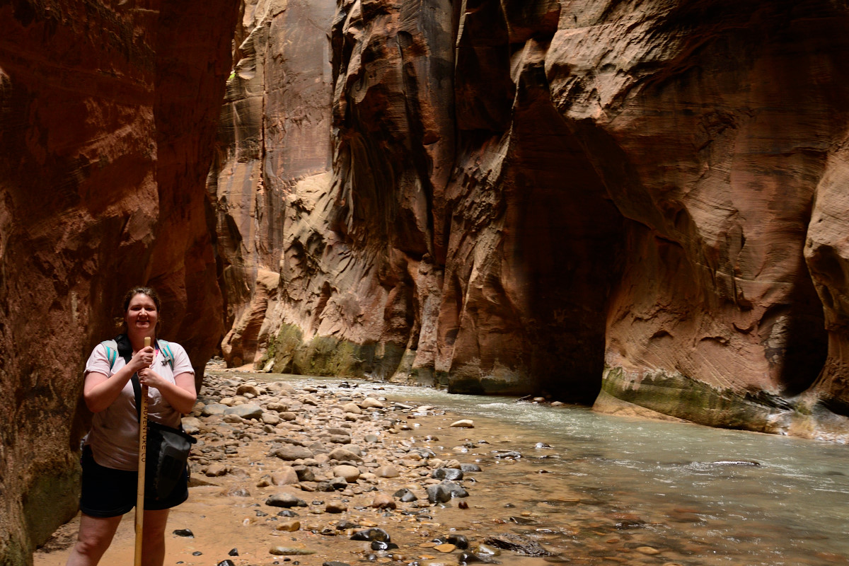 We rented gear from one of the places outside the park, which included water/canyoneering shoes, neoprene socks (the water was 64 degrees!), and a walking stick. Rosemary and I rented dry bags for our cameras as well. The gear was AMAZING. We saw so many people towards the end of our hike that were just doing it in their regular shoes and socks and I can’t even imagine that. If you EVER get the opportunity to do this hike, spend the $30 and rent gear. It’s totally worth it.