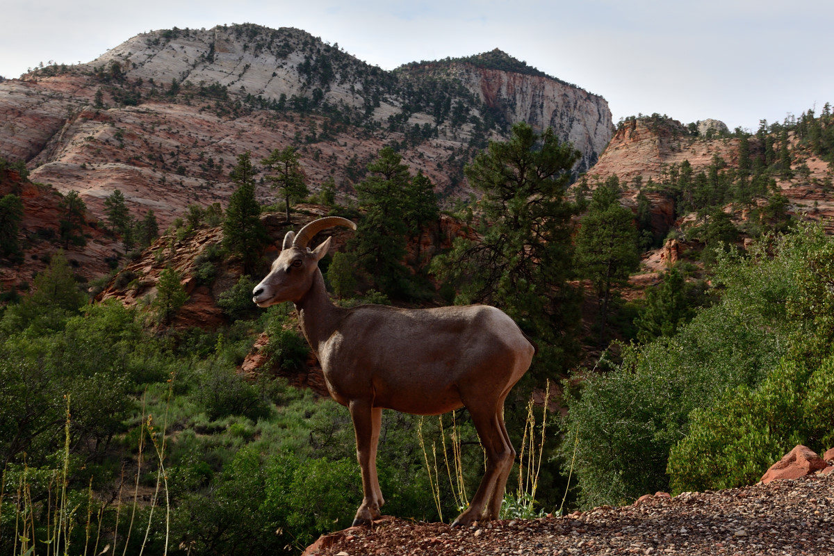 The third day of our Utah trip took us out of Zion and on to Bryce Canyon National Park, which is about a two hour drive from Zion. The drive between the parks is amazingly scenic, and we stopped quite a bit to take pictures and admire the scenery. This was also the morning that we SAW A BIGHORN SHEEP and he was amazing and we loved him.