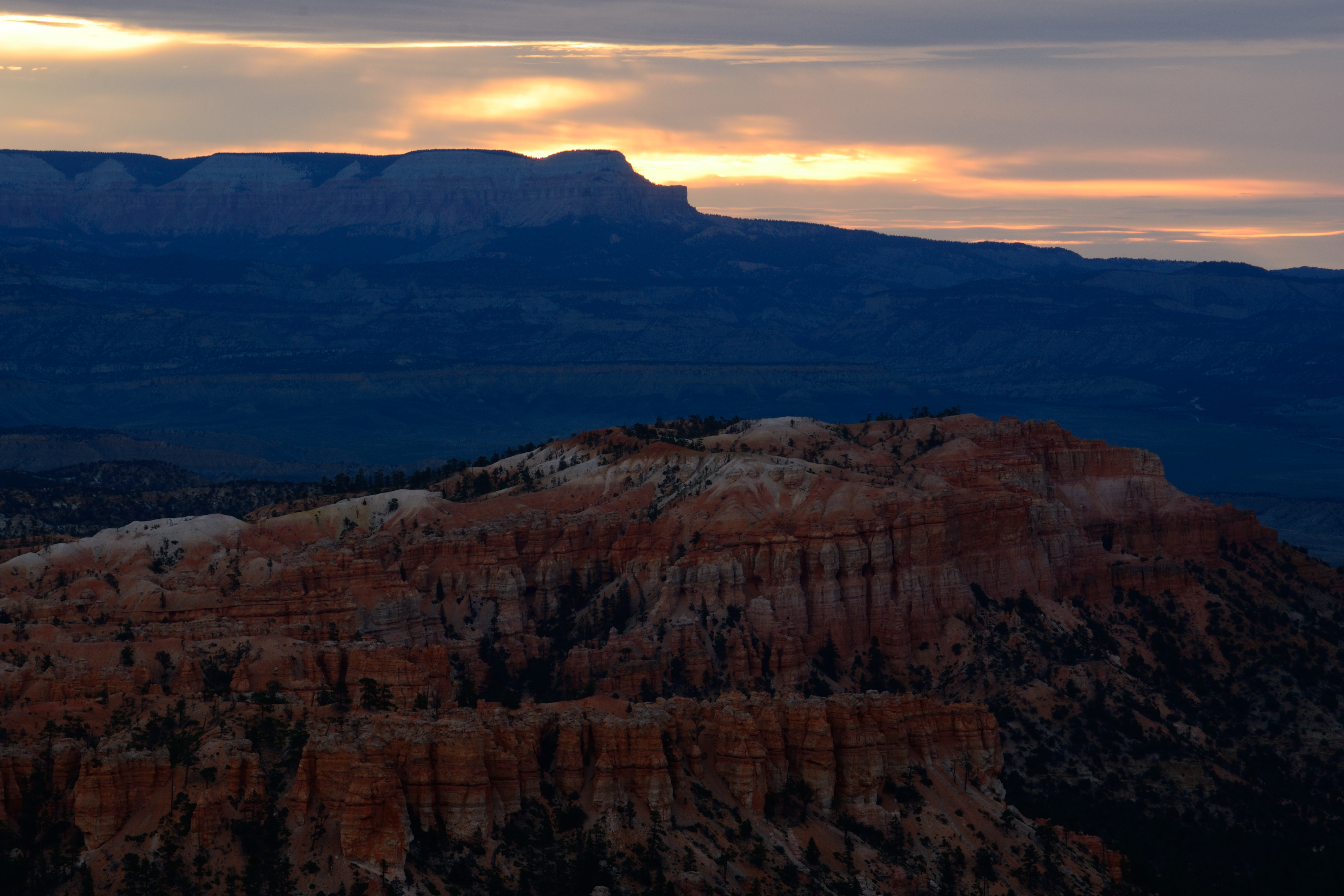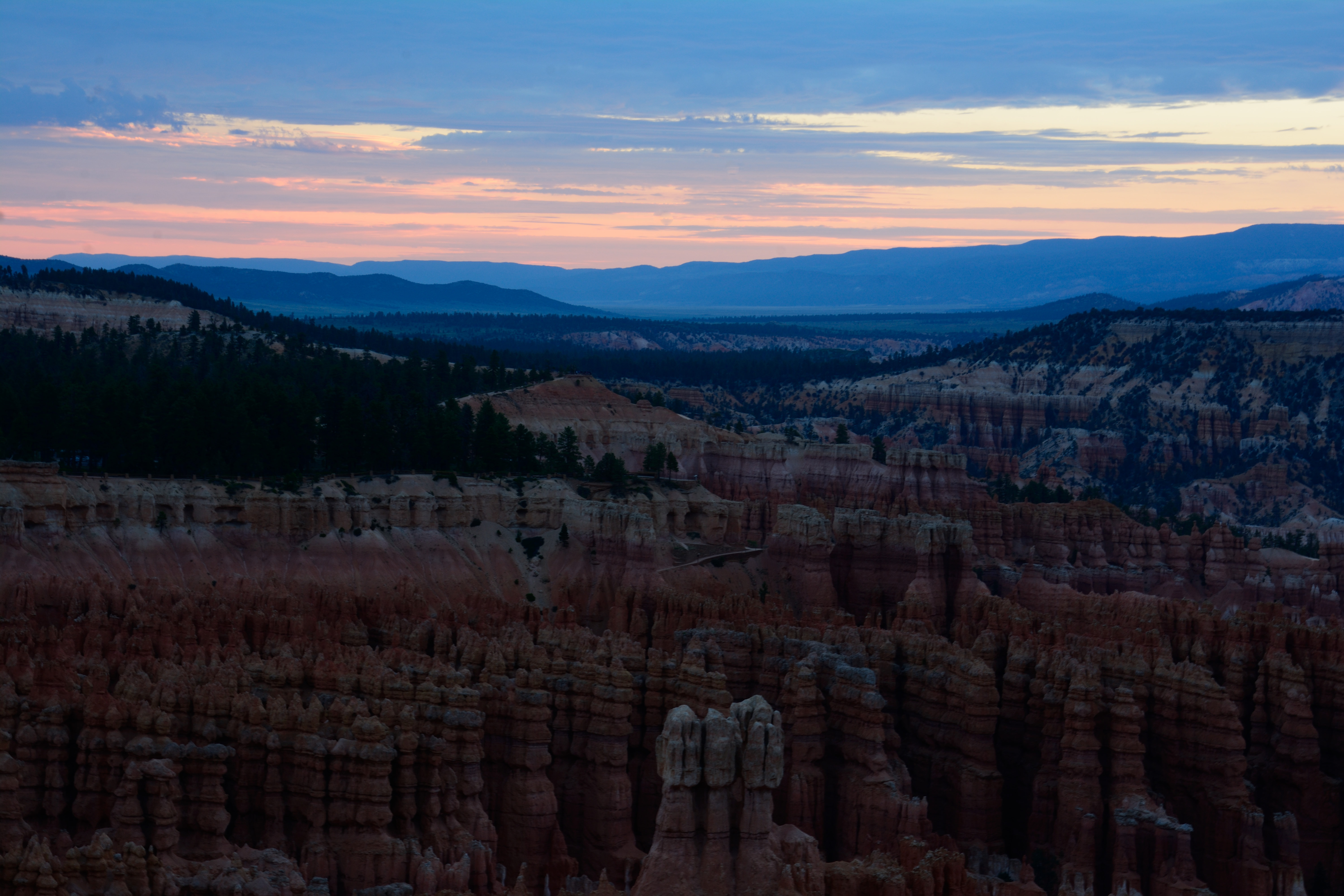 Bryce Canyon has a 30 mile scenic drive with a whole bunch of turn outs of scenic points. We did the drive, which was a great way to see the most scenic points along the rim! We ended our day watching the sunset at Inspiration Point, which was also where we started the next day for sunrise! Unfortunately, the weather was a bit more overcast than we would have liked, so the sunset and sunrise was a bit underwhelming. However, there were still some great shots to be had!