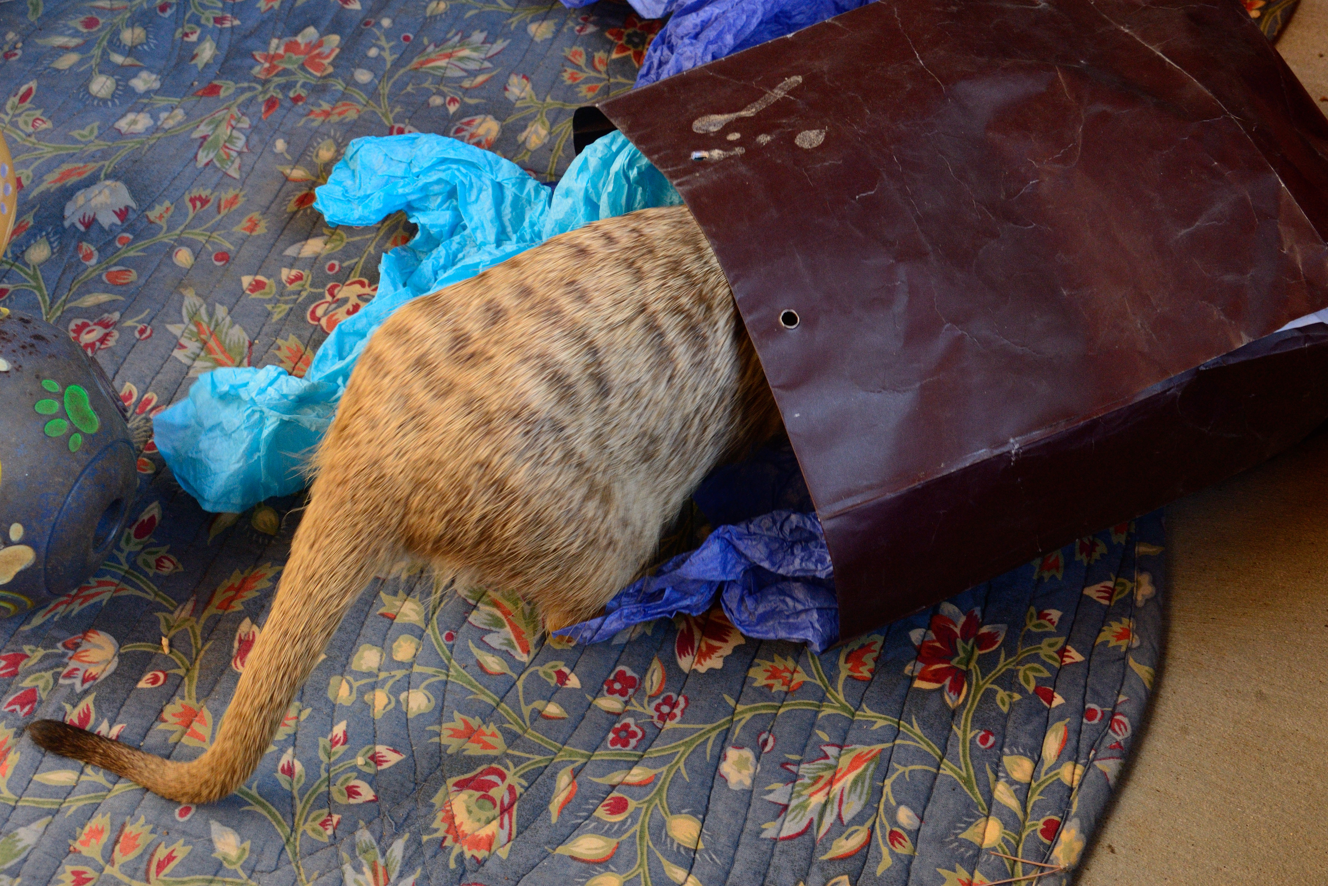 We got to feed and interact with the meerkats Lozi, Kulu, and Kavango. They enjoyed digging for mealworms from our gloved hands and playing around with their toys. We loved watching them – they are characters! This is definitely a highly recommended outing!!
