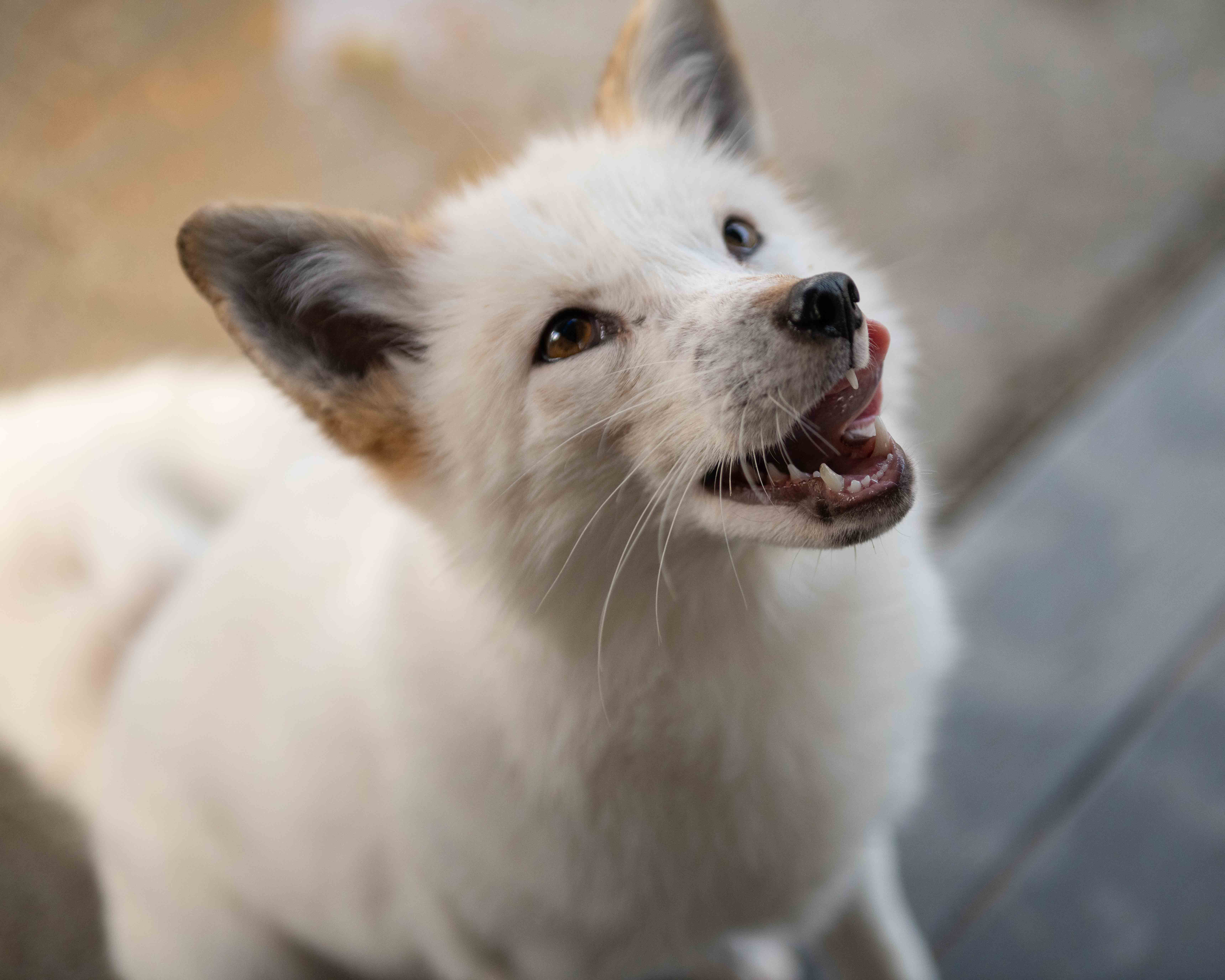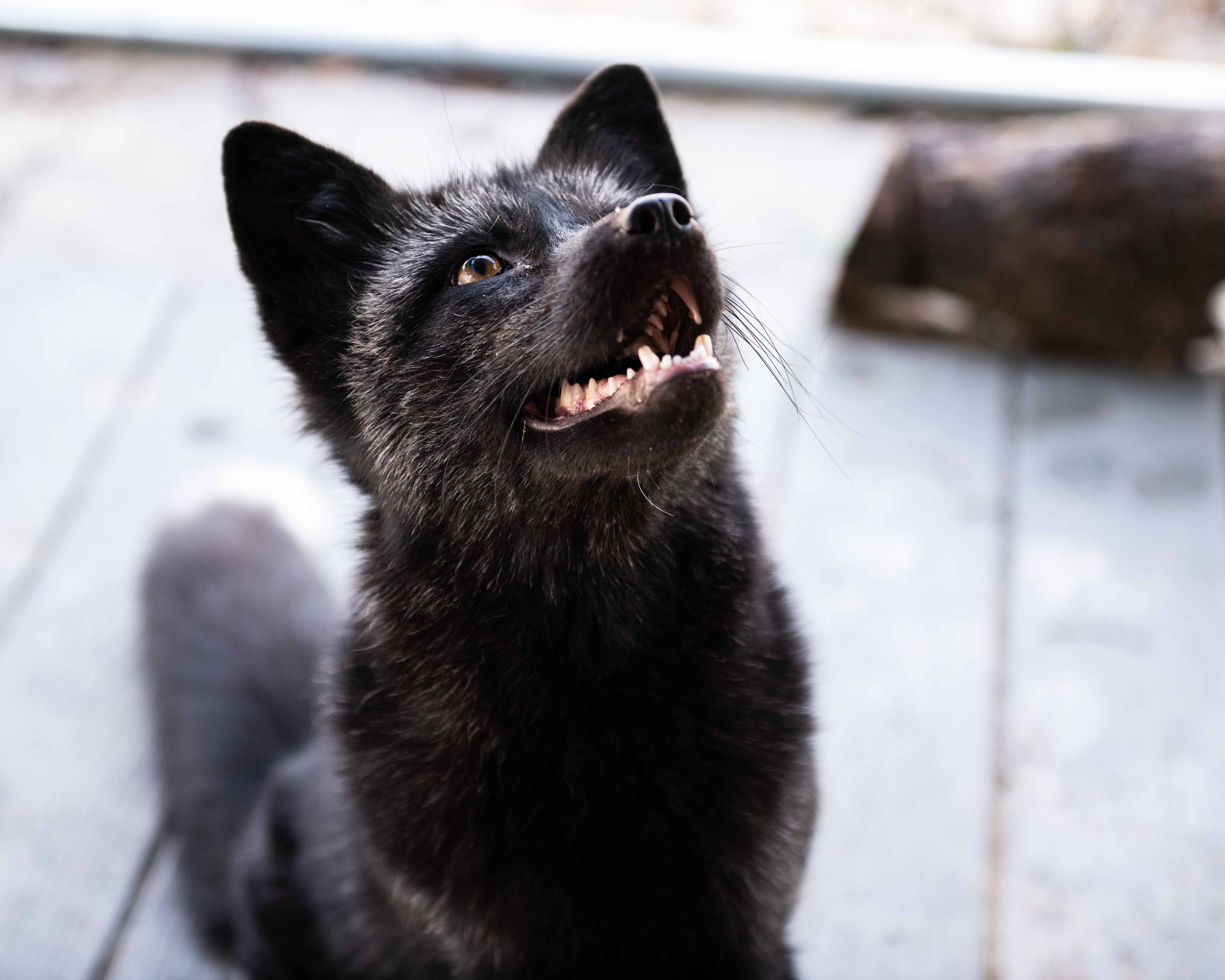 After our warm welcome by the New Guinea Singing Dogs, we went to meet the foxes. We met them one by one and chatted with the founders, Amy and Dave Bassett. They were absolutely delightful people and spent so much time answering all of our questions and educating us about foxes both in the United States and abroad. We met Maksa first and she was an absolute doll! She is a Russian Domesticated fox and was born in Novosibirsk, Russia. She posed so well for pictures!