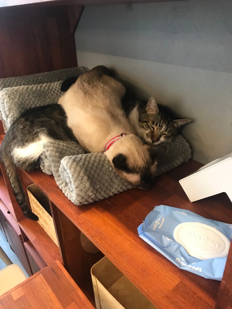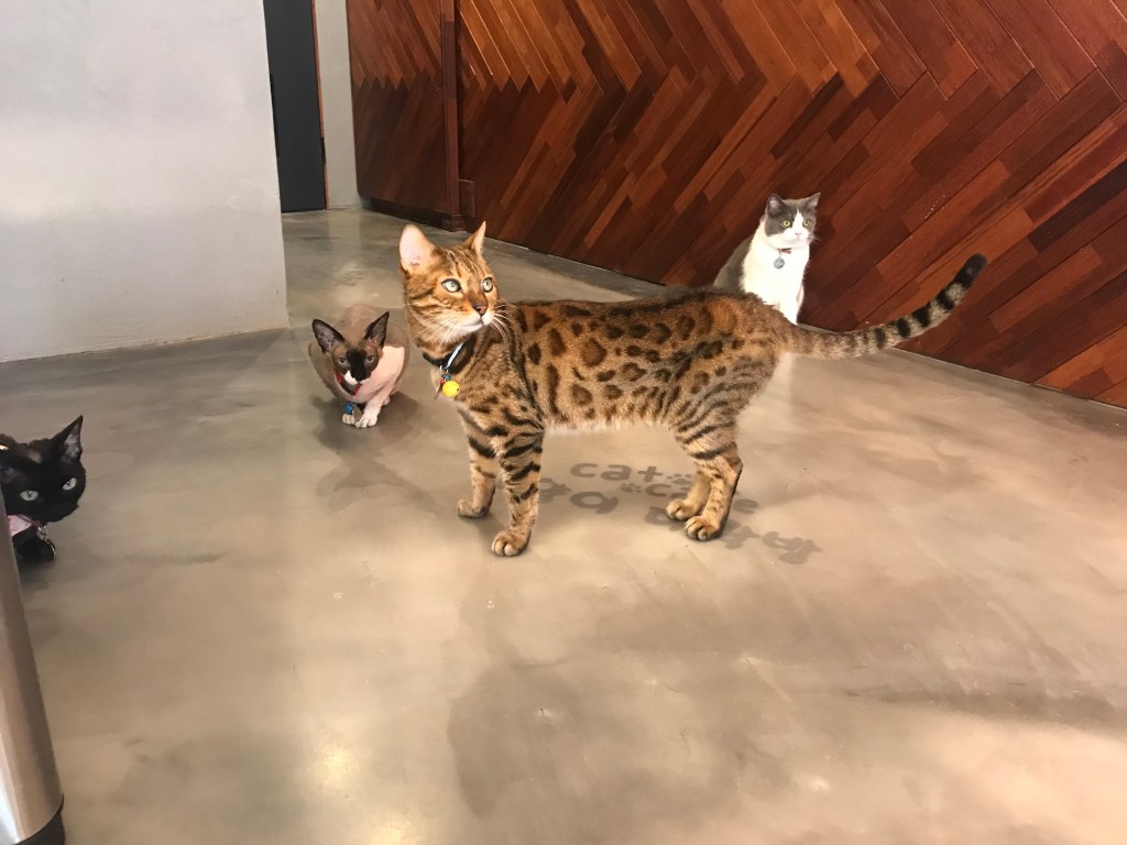The next stop was the Myeongdong Cat Cafe, which both Mike and I were most excited about. We had never been to a cat cafe before, so it was a new experience for both of us. It absolutely did not disappoint. There were so many cats there and we pet them all. There were all kinds of cats there, including two KITTENS who were super playful and cute. The staff also made up a couple of purritos (cats wrapped in blankets) and let us hold them. We had so much fun and spent more time here than I expected – it was just so hard to leave them!