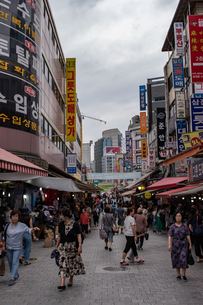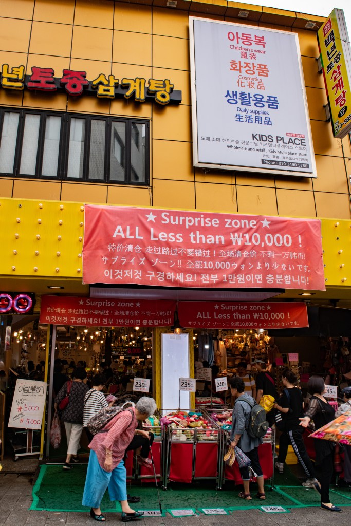We continued on to Namdaemun Market, which is the oldest and largest market in Korea. It actually dates back to 1414 where it began as a government marketplace. We walked through and were in awe of how many shops there were! We didn’t buy anything, mostly because it was a little intimidating and overwhelming. There were also a lot of clothes and shoes and Mike and I weren’t in the market for any of that stuff! We really enjoyed walking around and just looking at everything, though. I think my favorite part was their Surprise Zone, which was basically the Korean equivalent of a dollar store. Honestly, Surprise Zone is the best name for a dollar store and from now on that’s how I will think of them!