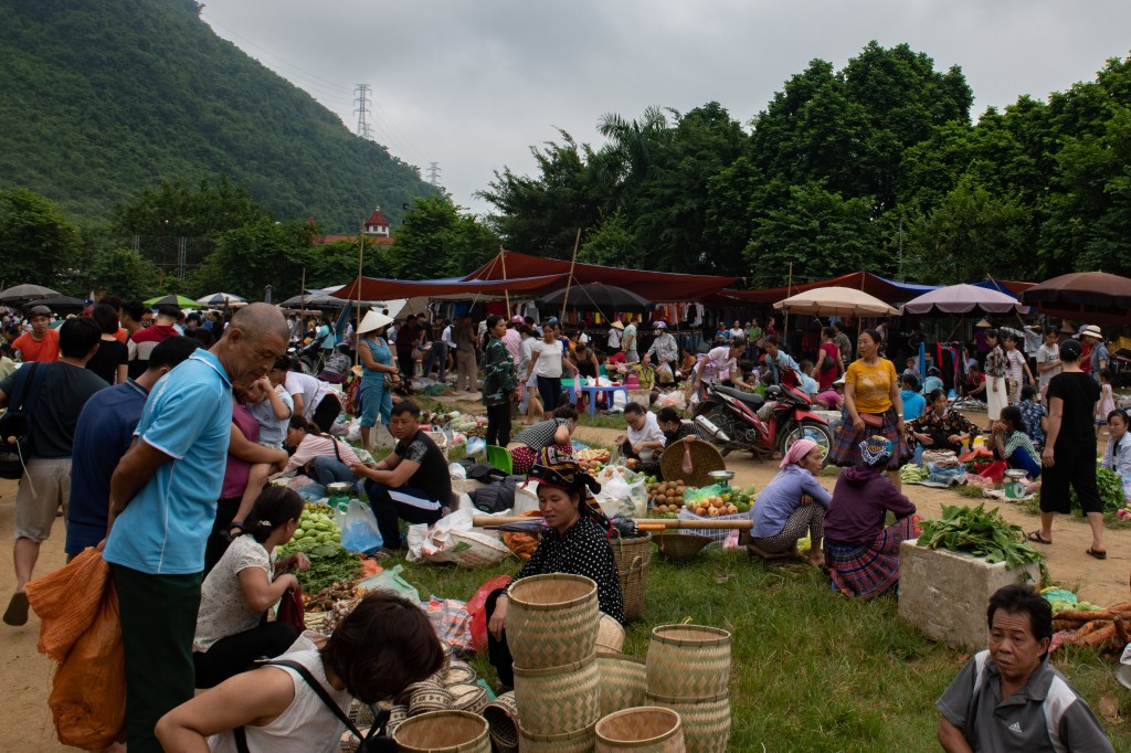 We started our day with a trip to a market in Mai Chau that’s only open on Sundays. As we pulled up to the market entrance, the first thing I saw was two people putting chickens in a funnel head first and chopping off their heads. It was…a lot. One thing that this trip brought to my attention is how uncomfortable I am facing where my food comes from. In the United States, we are so disconnected from the animal in which our chicken breasts or hamburger patties come from. It’s easy to forget or at least ignore that an animal was killed in order to get said chicken breasts or hamburger patties. Rolling up to a market and seeing chickens decapitated is jarring to say the least! Admittedly, this made the market trip a bit bleak. Walking around and seeing people carrying ducks in a plastic bag or chickens in a crate just made me sad. I completely understand that it’s a way of life for these people and honestly, in many ways, it’s nice to know where your food comes from. These people have that. All of the food we ate the whole time in Vietnam was fresh, clean (unprocessed) food. It was so delicious. I completely recognize the hypocrisy in this – I was sad to see crated chickens and ducks in bags, but I also enjoyed every meal I ate. There was not one bad meal the whole time we were in Vietnam.