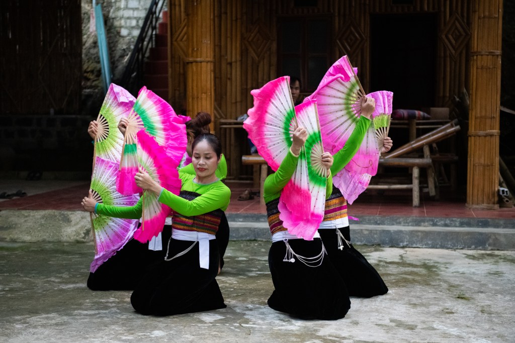 For dinner, we were treated to a group of local men and women performing traditional dancing show for us. They did several different dances and each one was so entertaining and beautiful to watch! For the last dance, they invited us to participate, which was so fun! They also brought an urn full of rice wine and punched straws through the top to share with us. It was a perfect way to end our time in Mai Chau.