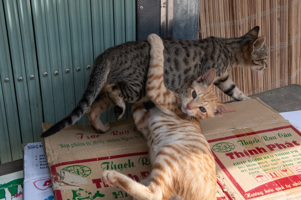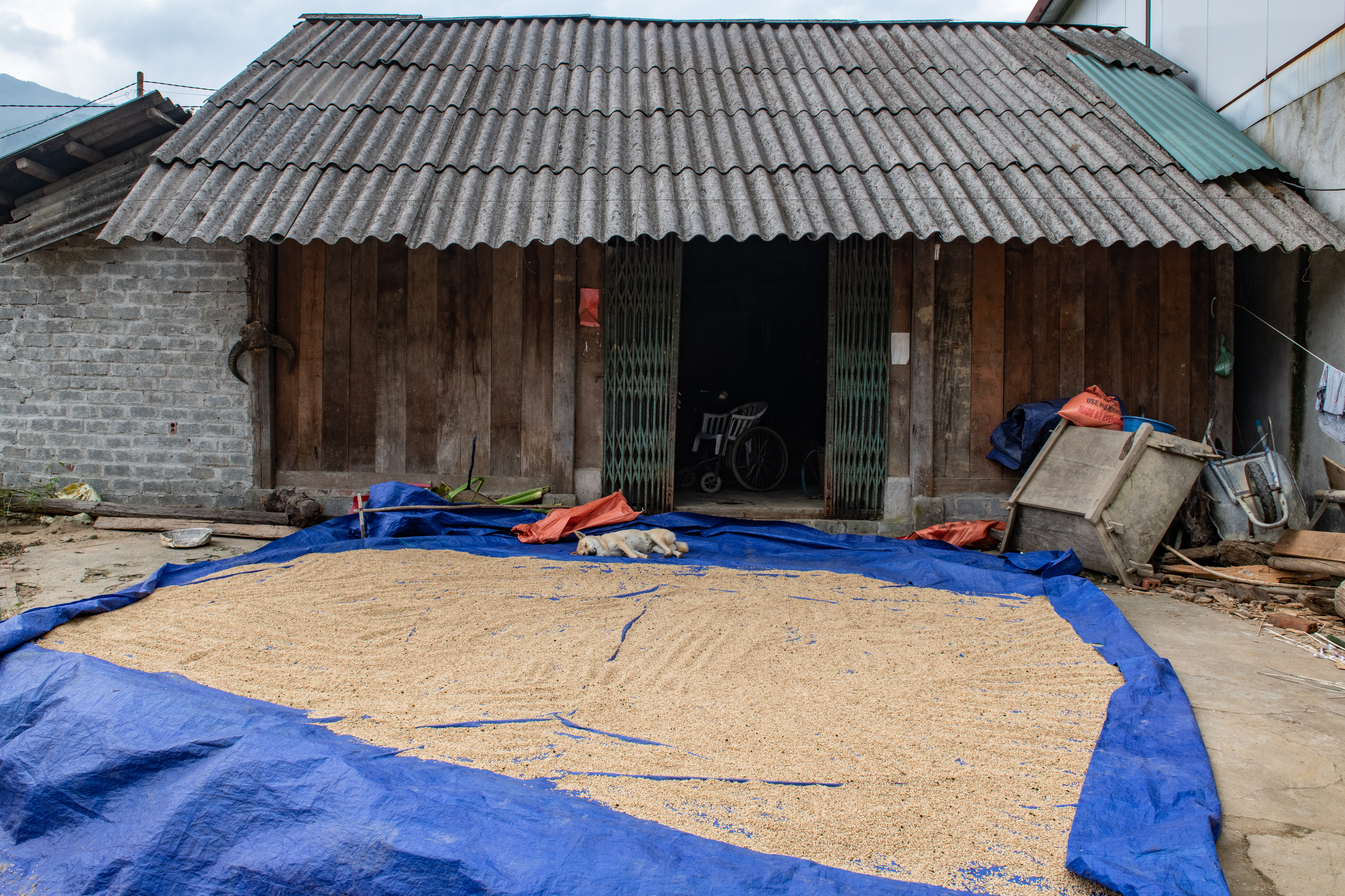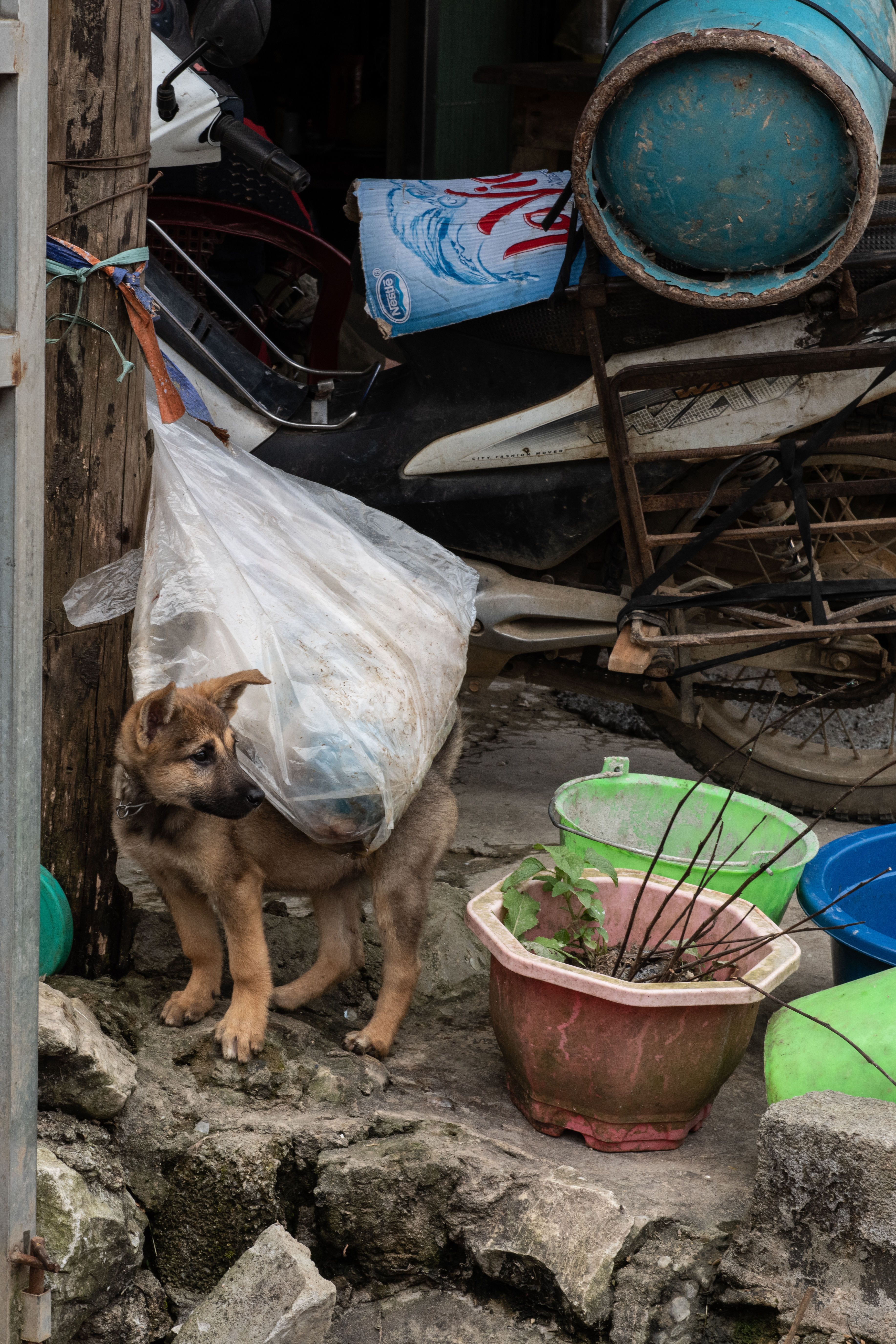 After the church, we continued to the village. As our bus parked, the Red Dao descended on our bus like crazy! They were all eager to sell us their textiles and swarmed our group the whole time we visited the village. It was a bit overwhelming, but it didn’t take away from seeing the village! My big story of the village was that I saved a puppy! We were walking around the village and I saw a puppy that had his head caught in a plastic bag handle and was stuck on a pole. There was a family eating lunch around a corner, so I asked our guide to mention to the family what was going on with the puppy. They rushed over and rescued the puppy from the bag, so I felt a bit like a hero.