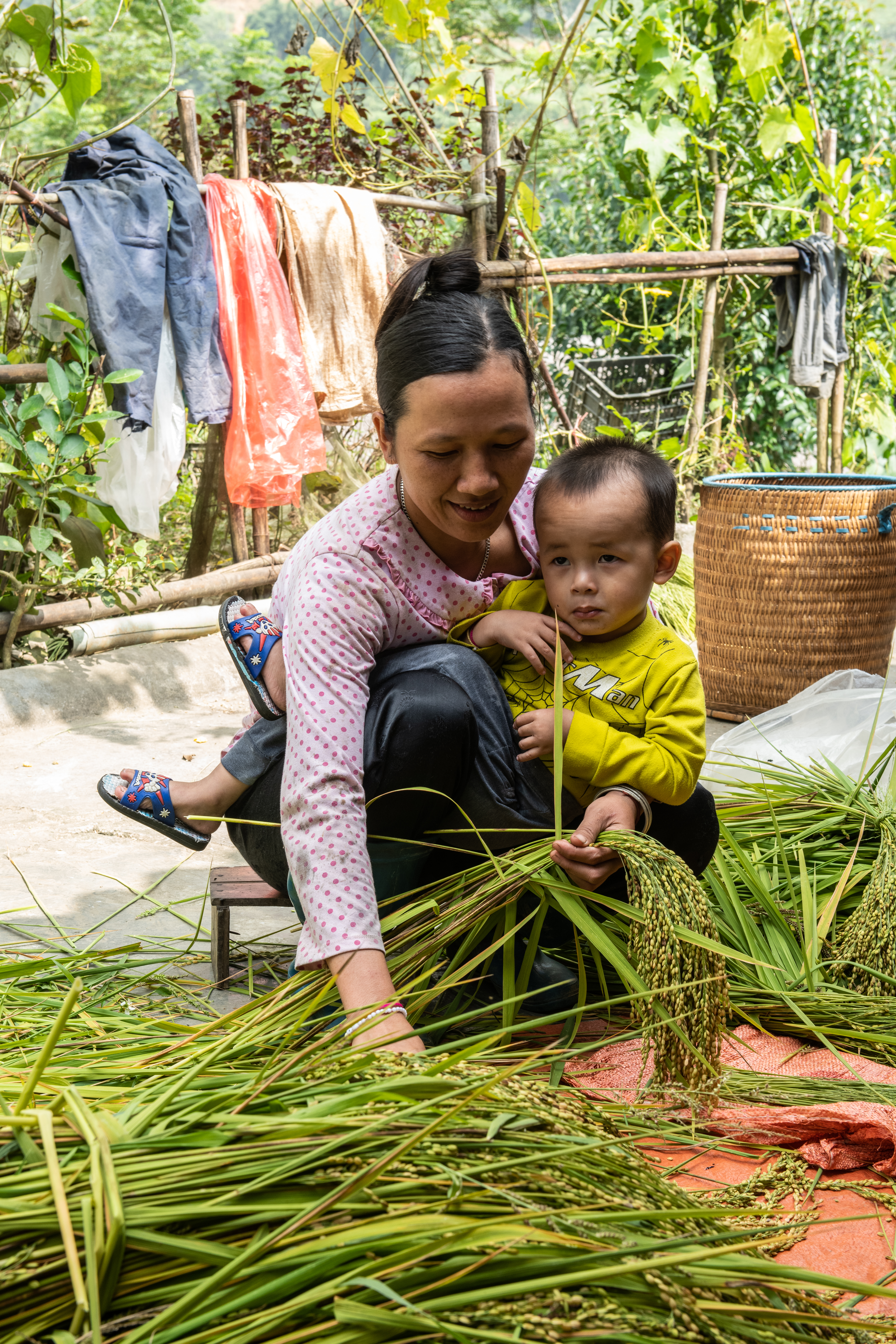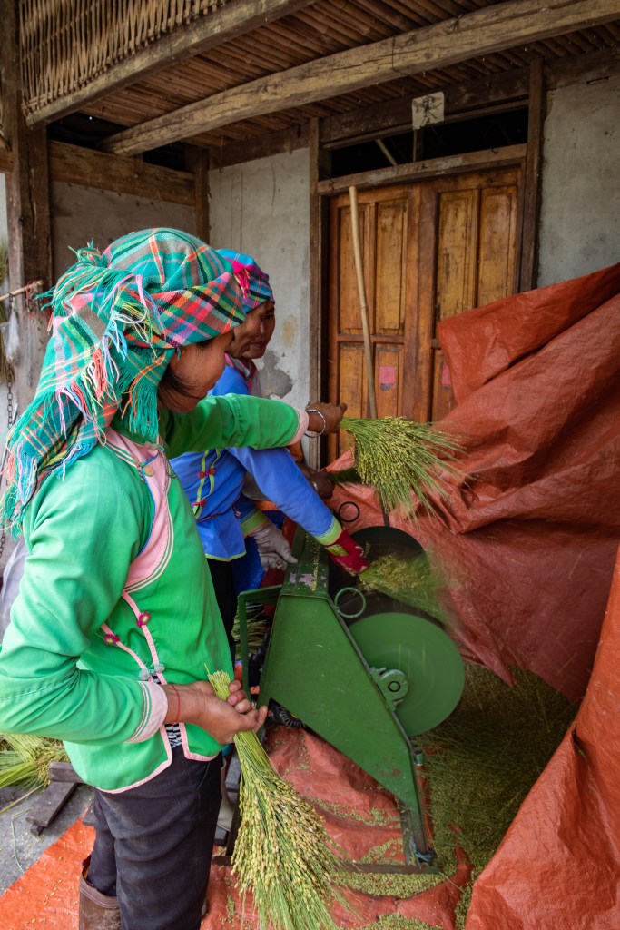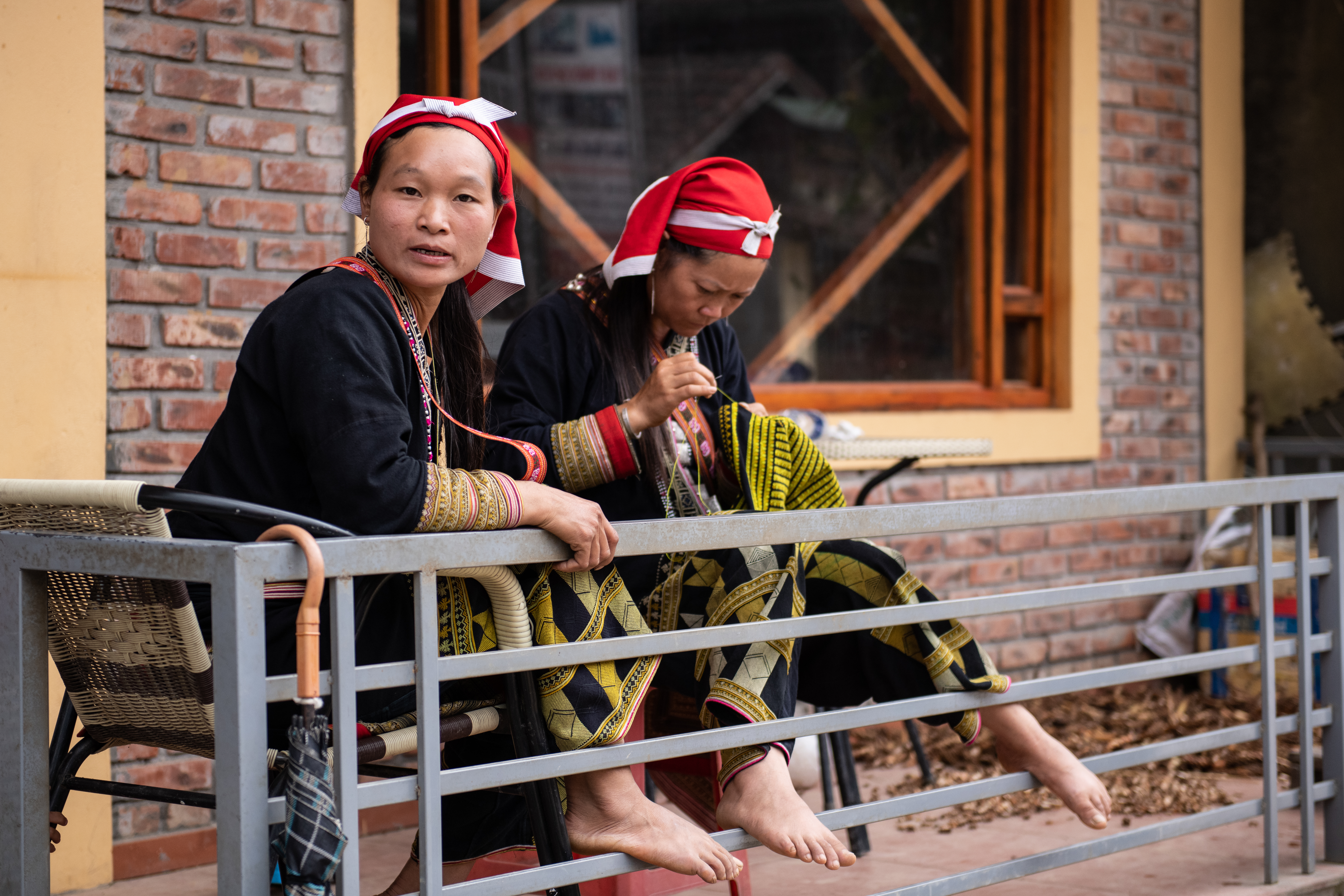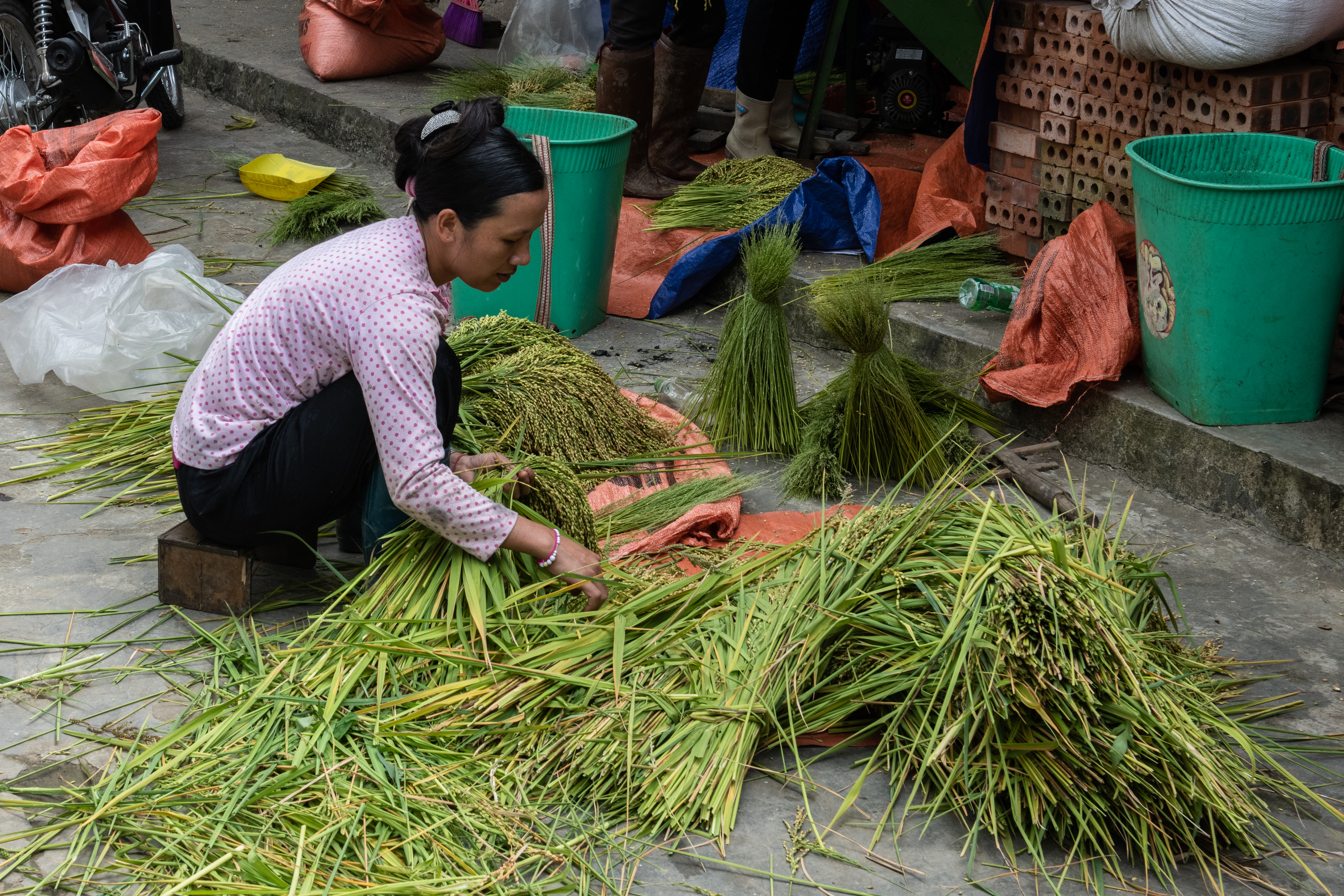 The next day, half of our group took a hike in the mountains and the other half drove to a village and had some time to walk around. Mike and I joined the latter half. We were so lucky to come across some women processing rice and got to see how it’s done! We also got to try some fresh green rice, which was surprisingly sticky and sweet. We ended up at a restaurant that overlooked the terraced rice fields and met up with the other half of our group for lunch. After lunch, we went to Ta Phin Village, to visit the Red Dao. On our way to the village, we stopped at an abandoned Catholic church that had been built by the French in 1941! It was so neat to see and it was a very picturesque stop!