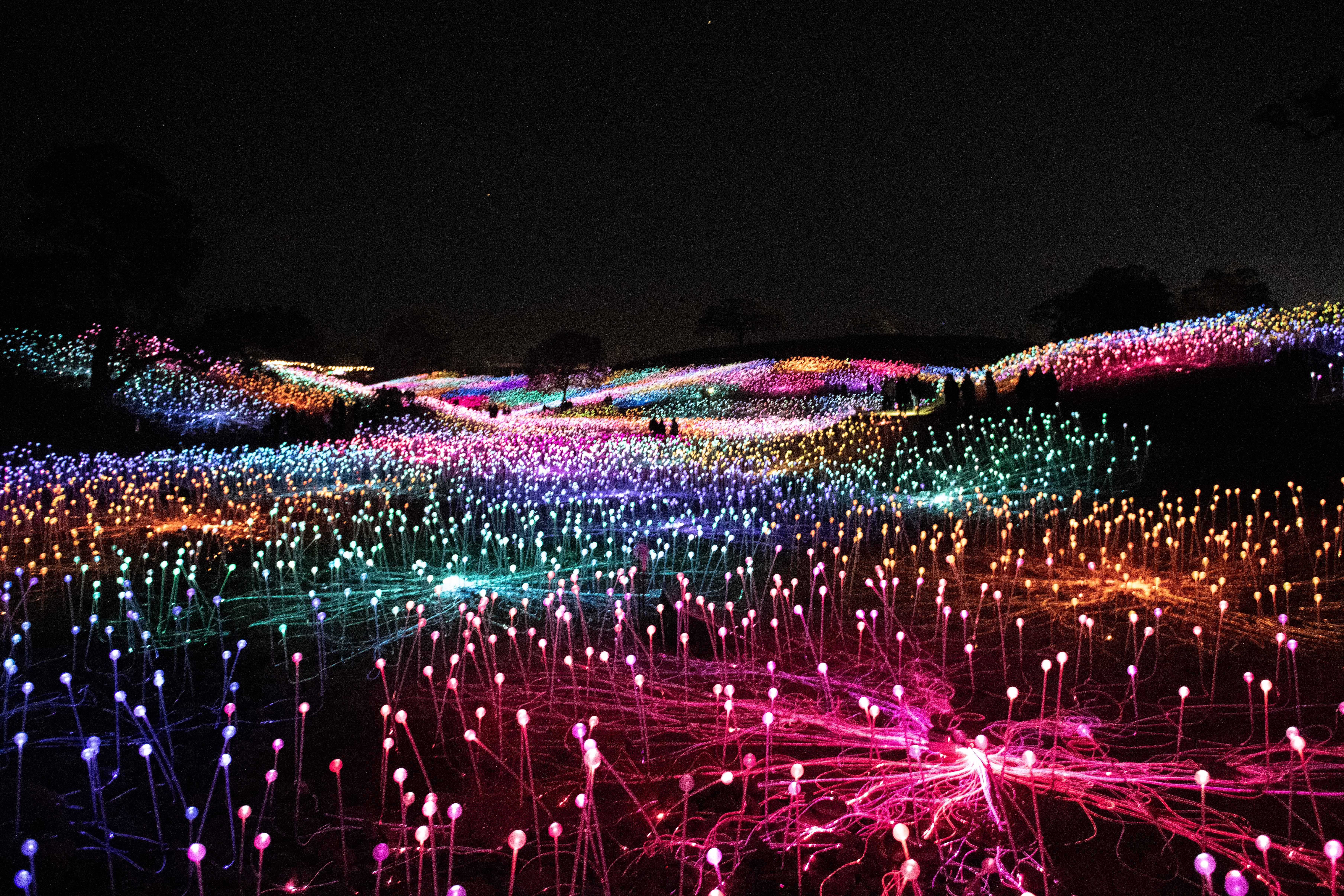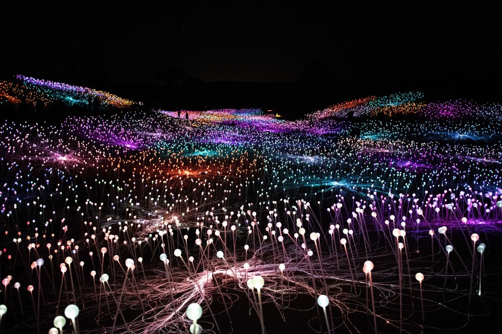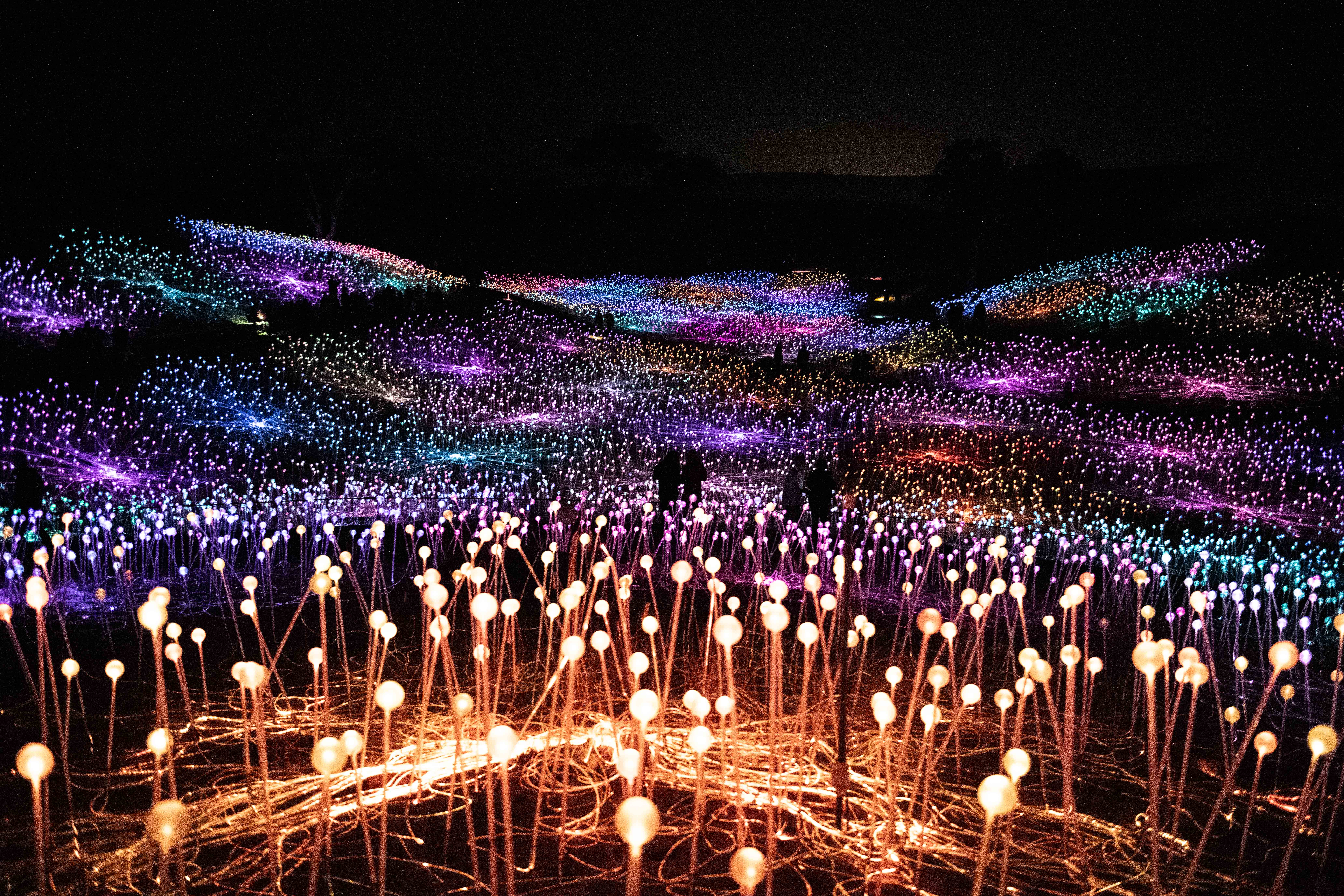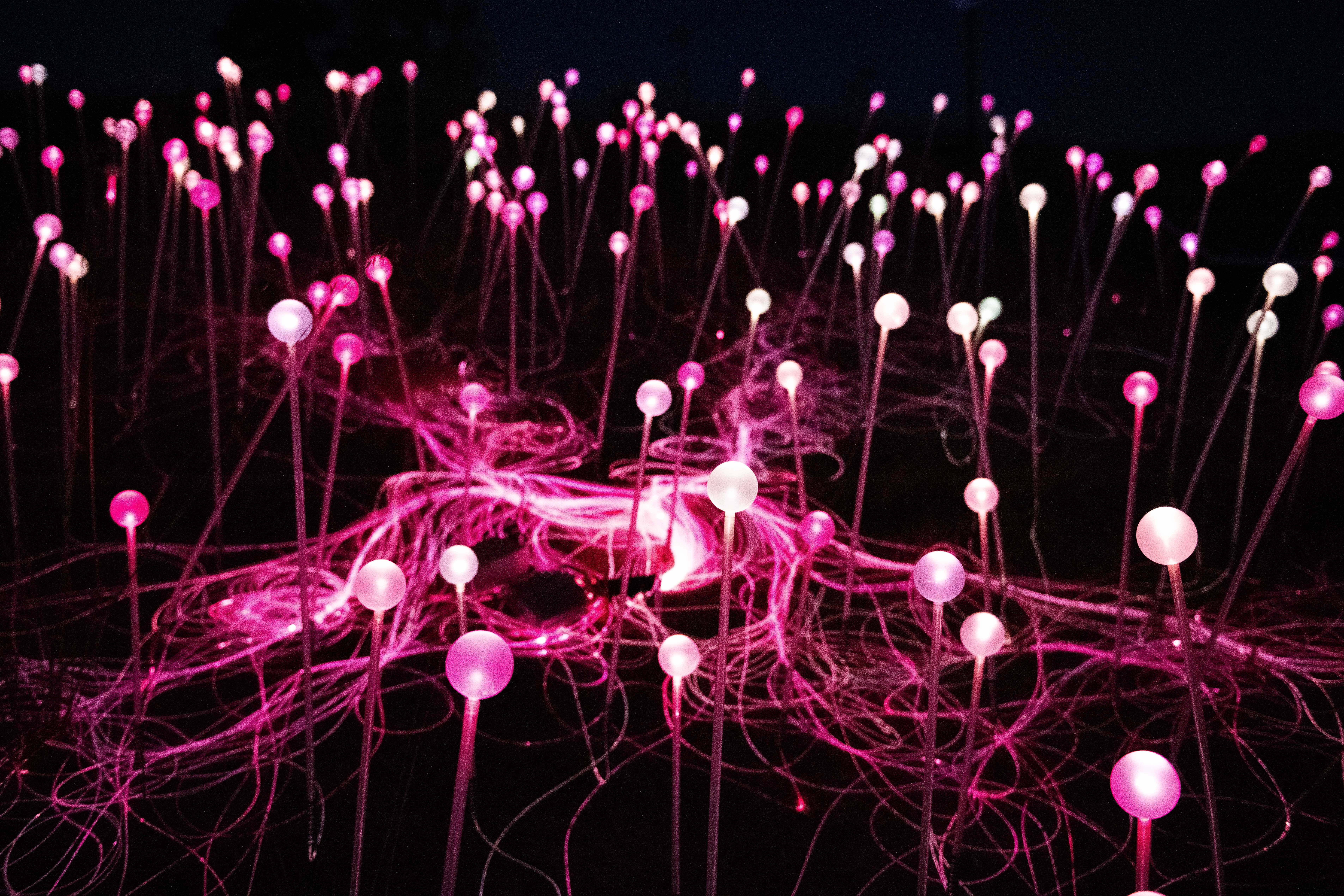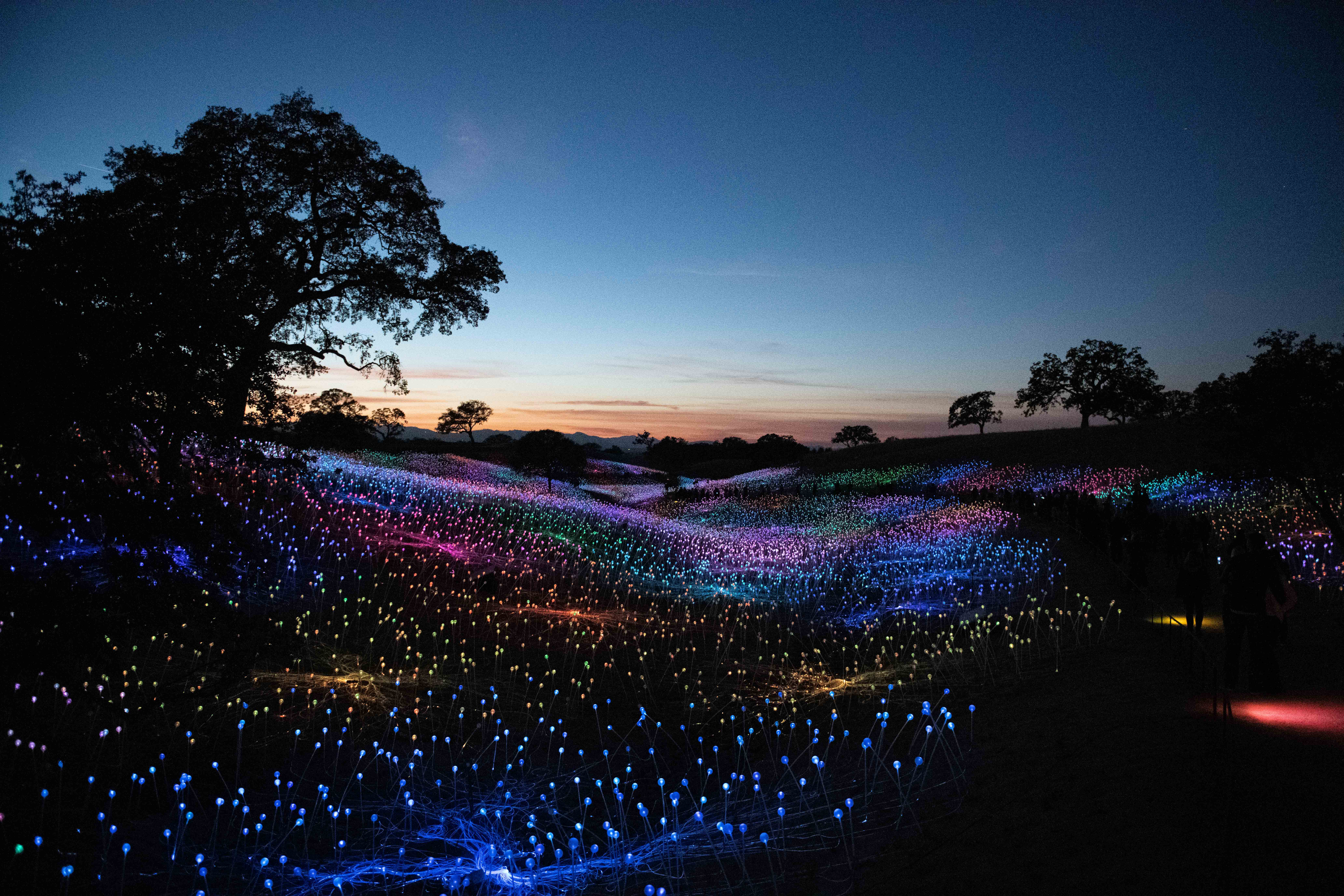 Sensorio is basically a valley full of lights that has walking paths so you can walk through this immersive experience. All total, there are 15 acres of lights – 58,000+ fiber optic lights! They gently change color the whole time so the entire valley is constantly changing. The lights themselves were super interesting – they were bulbs on stems and the wires roped around and created a flowy feel. Honestly, they reminded me of neurons – the cluster of wires pushing light up the stems and into the bulbs. This is all solar powered, too! We got to Sensorio right when they opened, so we were able to experience the lights through sunset, dusk, and then night. It was overall a really neat experience and we would highly recommend the trip to see this!