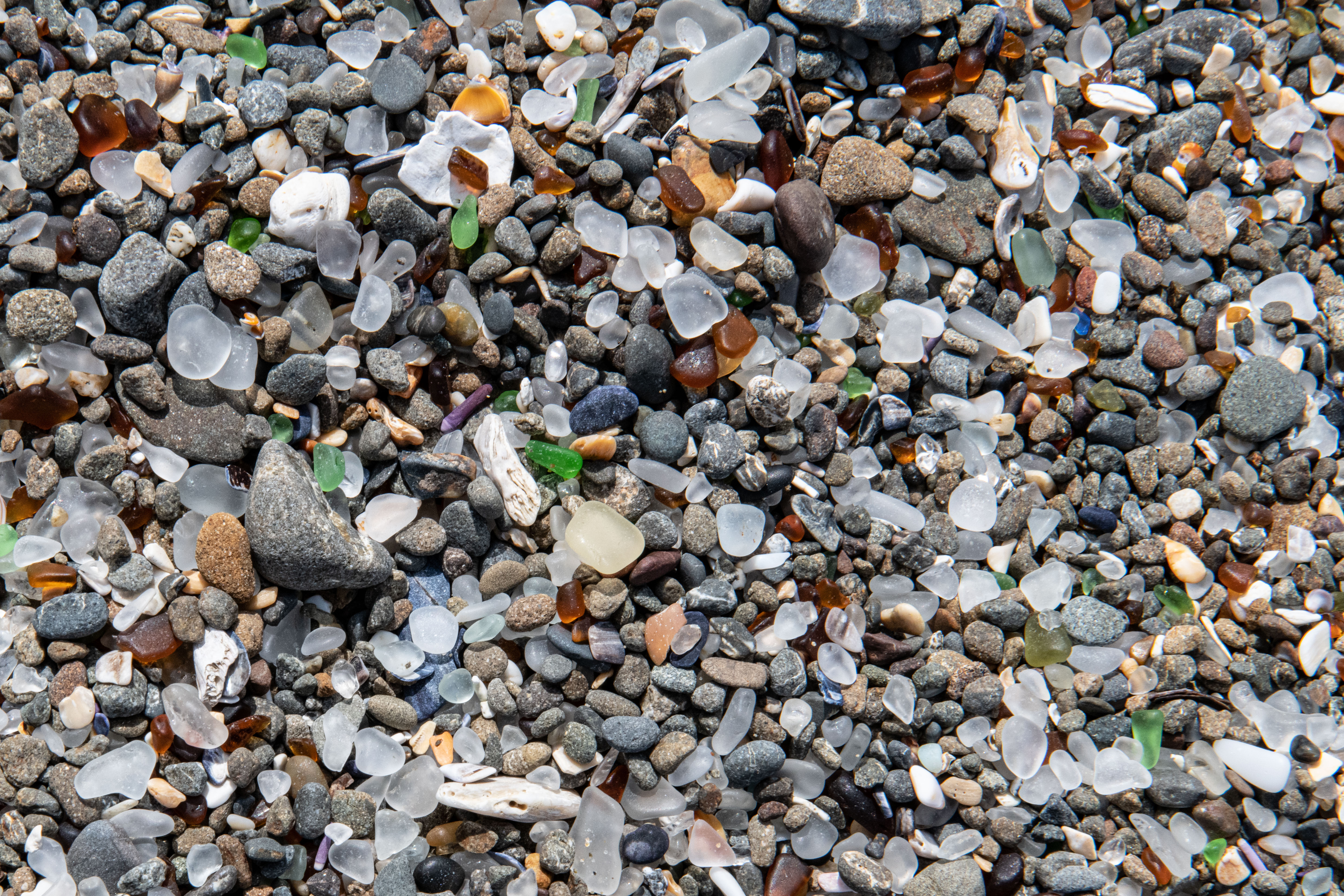 Glass Beach used to be a trash dump until it was closed in 1967 by the state. The state began cleanup to remove the non-biodegradable items and over the years, the ocean smoothed out all of the broken glass bottles and pieces of pottery and those just became part of the pebbly beach. This has become a tourist attraction and the amount of glass on the beach has diminished in recent years due to tourists taking pieces with them when they leave. There were talks within the community to begin replenishing the beach with recycled glass, but the city declined to go that route. We were definitely glad that we went – it was a peaceful beach and it was so neat seeing the little pieces of sea glass in the pebbles!