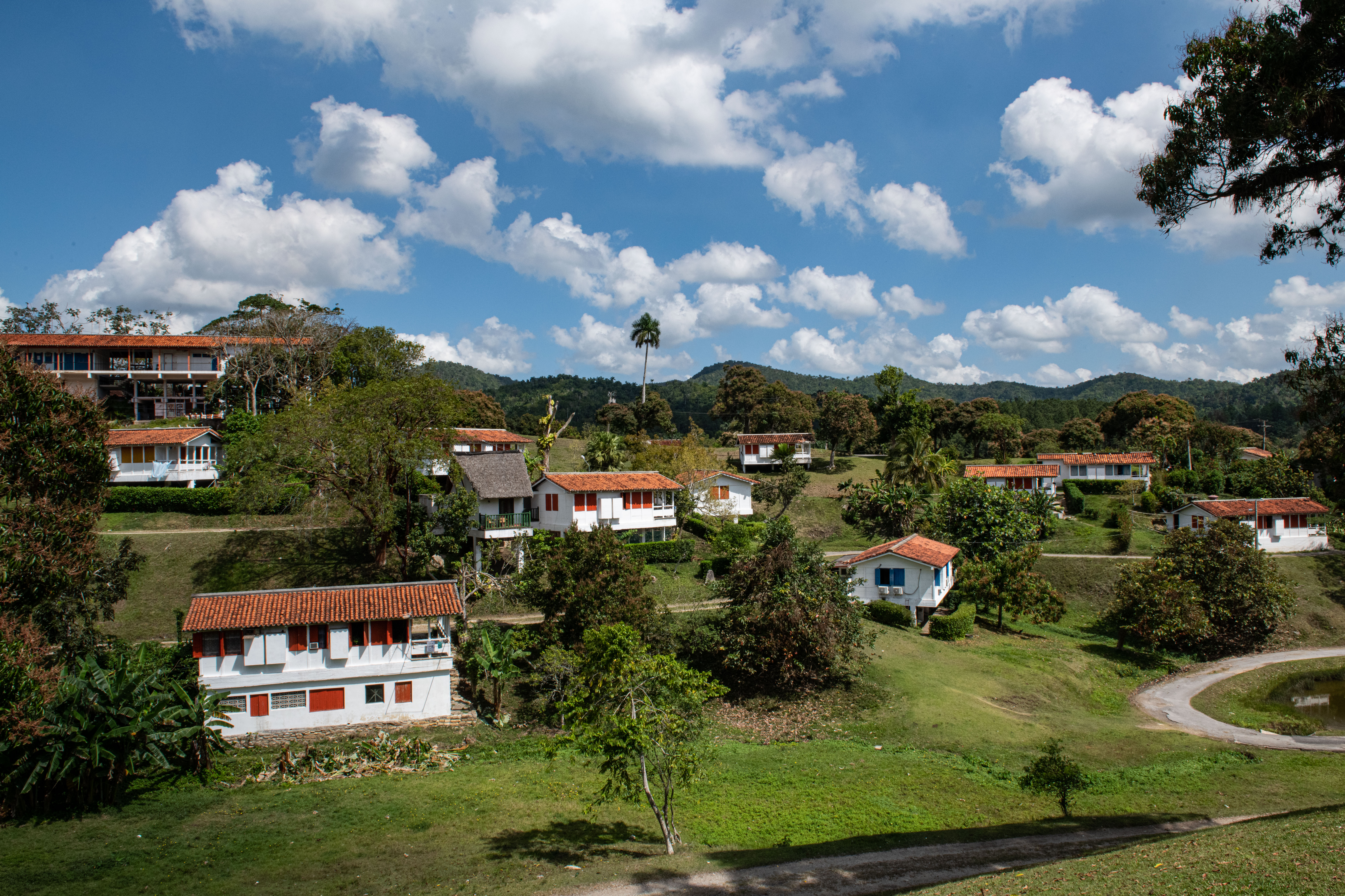 On our way to Viñales, we stopped at Las Terrazas, which is a beautiful biosphere that was manmade on land that had been decimated by coffee farming for decades. At the end of the 1960s, millions of trees were planted on this 12,000 acres of land in a terraced way, which is where the name comes from. UNESCO designated Las Terrazas as a Biosphere Reserve in 1985. There is a small population of full-time residents and plenty of tourist attractions like ziplining, hiking, and swimming. This place was so beautiful and peaceful and a good example of taking land that had been cultivated and rendered useless and turning it into a thriving biosphere. We visited a small coffee shop called Cafe de Maria and had the best iced coffee I’ve ever had in my life! We also bought two bags of coffee to bring back and I’m so excited to brew it! We put the coffee in one of our kitchen cabinets and whenever we open any of the cabinets near it, the smell of Cuban ground coffee wafts out! After the coffee shop, we went for lunch at a cute restaurant nestled in the forest. Everything was cooked over a wood fire and the food was absolutely delicious! I even shared some of my food with a buddy:
