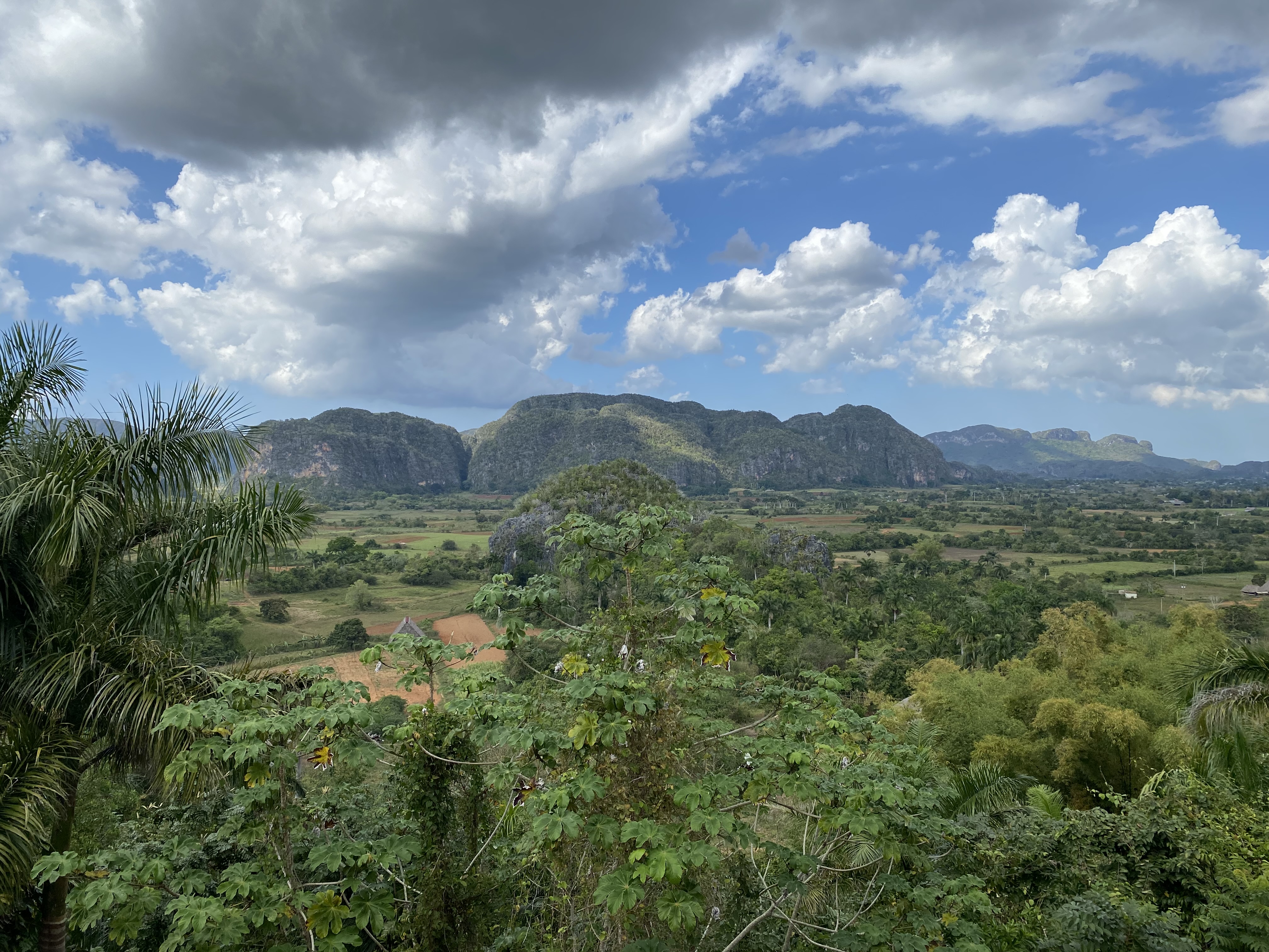 We left Havana to head to Viñales, which is located in the Pinar del Río province of Cuba. It’s about a three hour drive from Havana. The Viñales Valley was designated as a UNESCO World Heritage Site in 1999 because of it’s unique landscape and the traditional agriculture that takes place. Viñales is where a lot of tobacco is grown – more on that in the next post! The other very unique thing about the Viñales Valley are the mogotes scattered through the valley. Mogotes are isolated hills with steep sides that were formed many moons ago during the Jurassic period when the ocean floor rose and gave way to these limestone formations. Once formed, erosion helped create cave systems in and underneath the mogotes. Viñales actually has one of the largest cave systems in the Americas! One of the reasons agriculture, especially tobacco, thrives in this valley is because of the mineral-rich earth from the formation of these mogotes 200 million years ago. The mogotes reminded Mike and I of the formations we saw in Vietnam, and it turns out they are the same! They just go by mogotes in Cuba, as the Basque word for “sharp-pointed” is mogoti. These limestone formations are not found in many places in the world, so we felt lucky to have experienced them in two vastly different areas of the world!