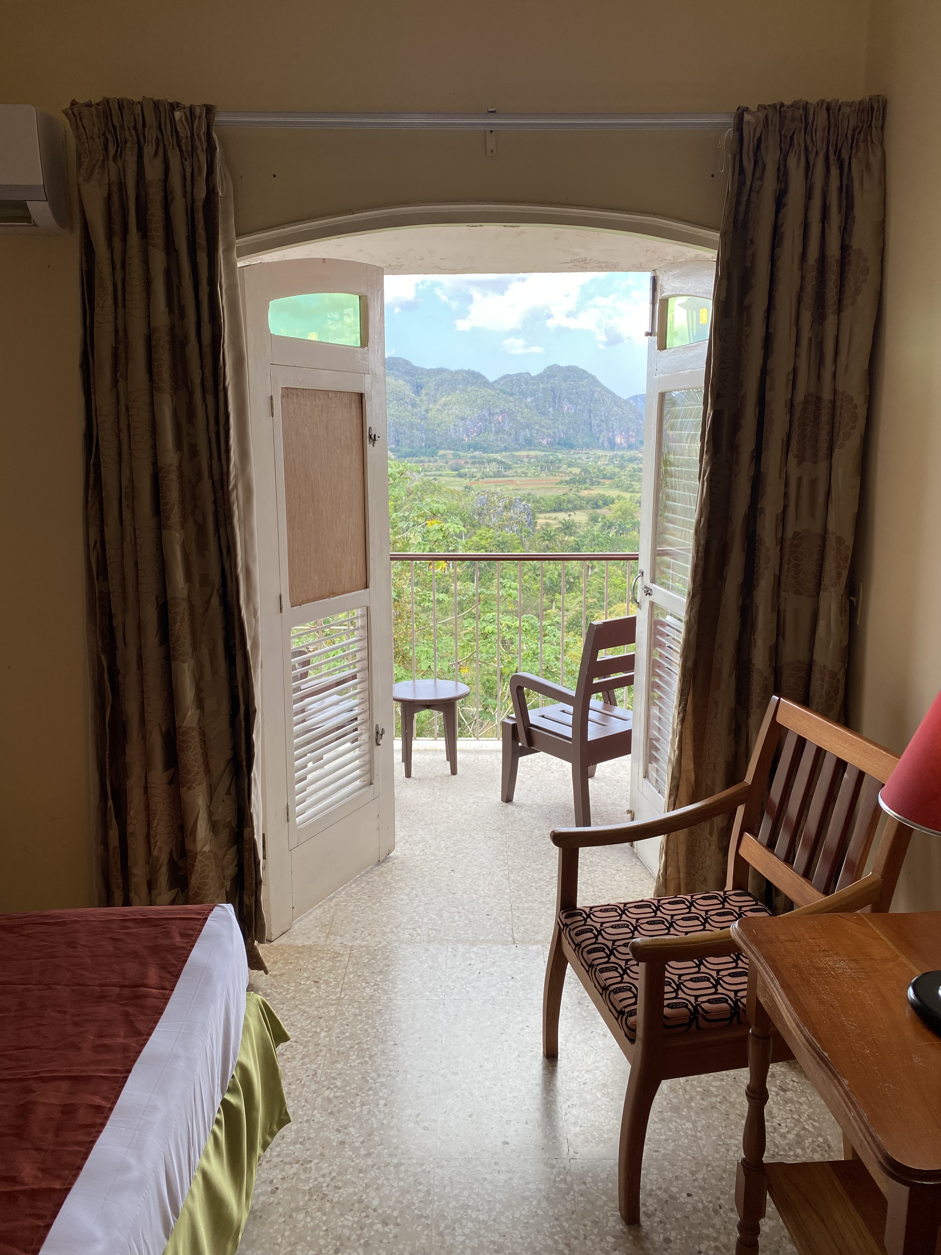 After lunch, we headed to our hotel in Viñales, Hotel Horizontes Los Jazmines. We arrived in the early afternoon and the view from our room was absolutely spectacular, which can be seen by these two iPhone pics that Mike took: