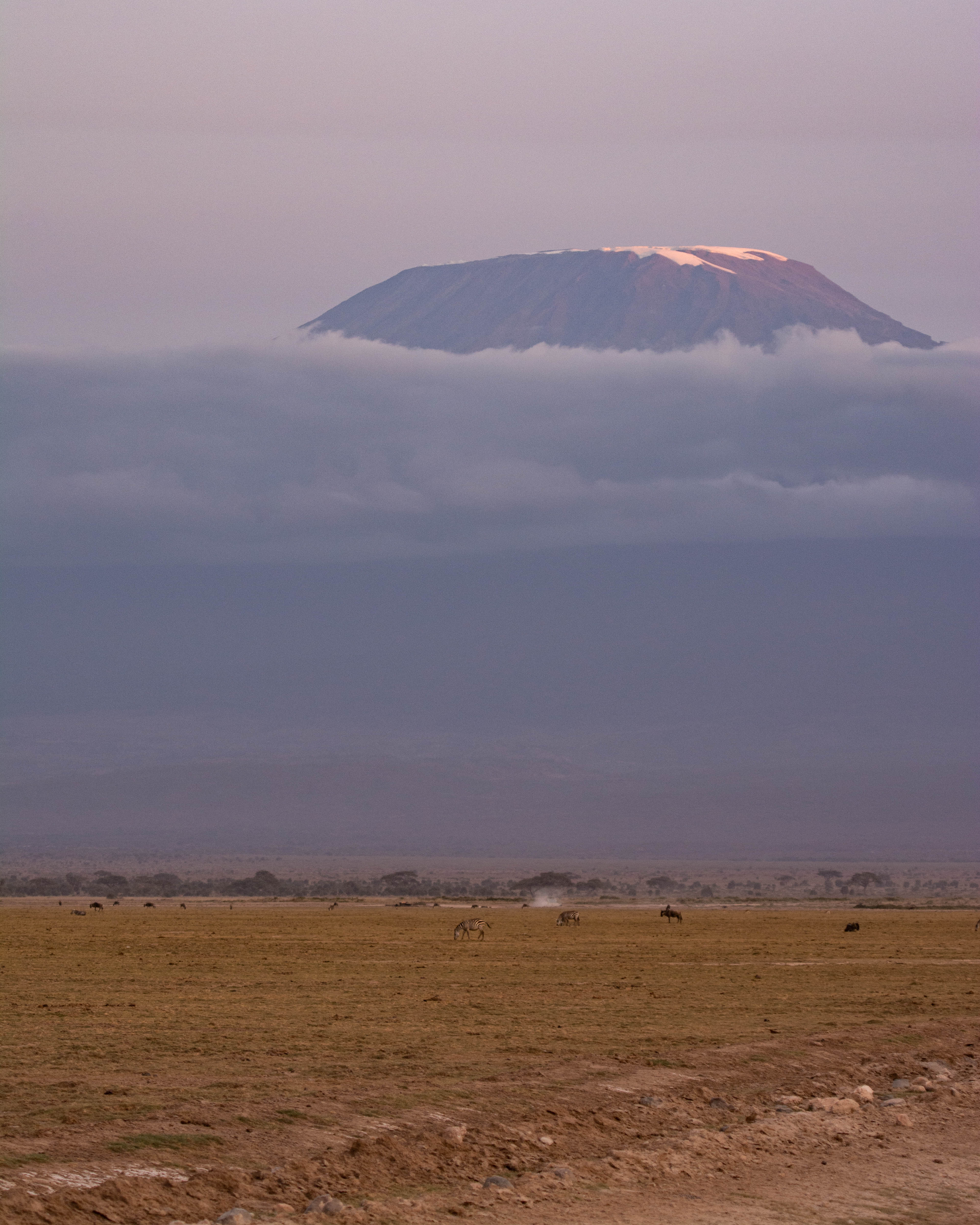 The first part of our Kenyan safari began in Amboseli National Park, which is located in the southern part of Kenya along the Tanzanian border. The park offers an amazing view of Mount Kilimanjaro, which is located in Tanzania. Mount Kilimanjaro is the tallest free-standing mountain in the world and the tallest mountain in Africa. We got a couple of peeks at Kili’s peak while we were in Amboseli, but it is elusive and we were never able to see the whole mountain. However, when we were able to see the peak, it was astounding to see just how tall it was. Especially since it was hidden most of the time, so we were just driving around the park looking at animals and then all of a sudden you’re reminded that there’s a 19,000 ft tall mountain in the area!