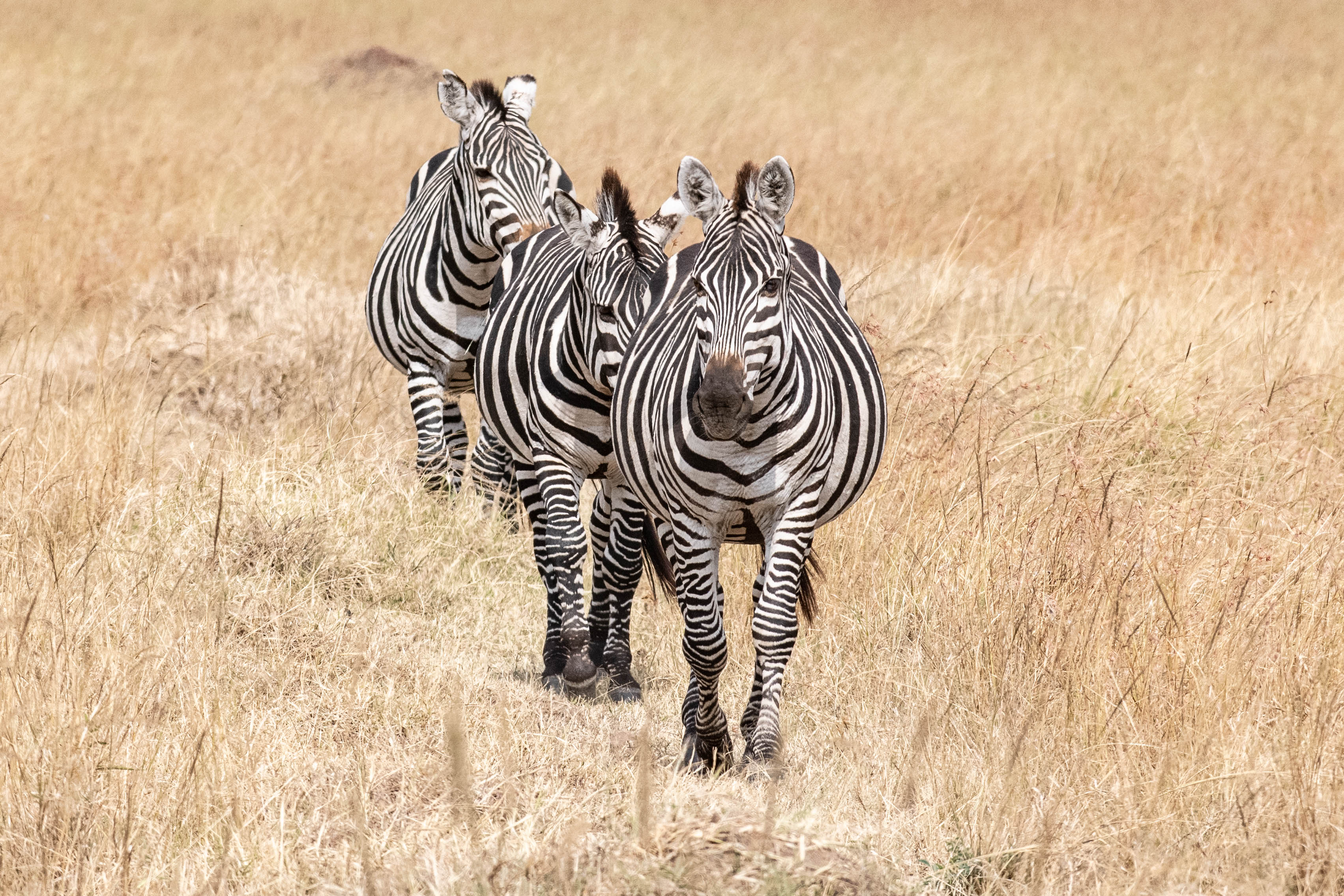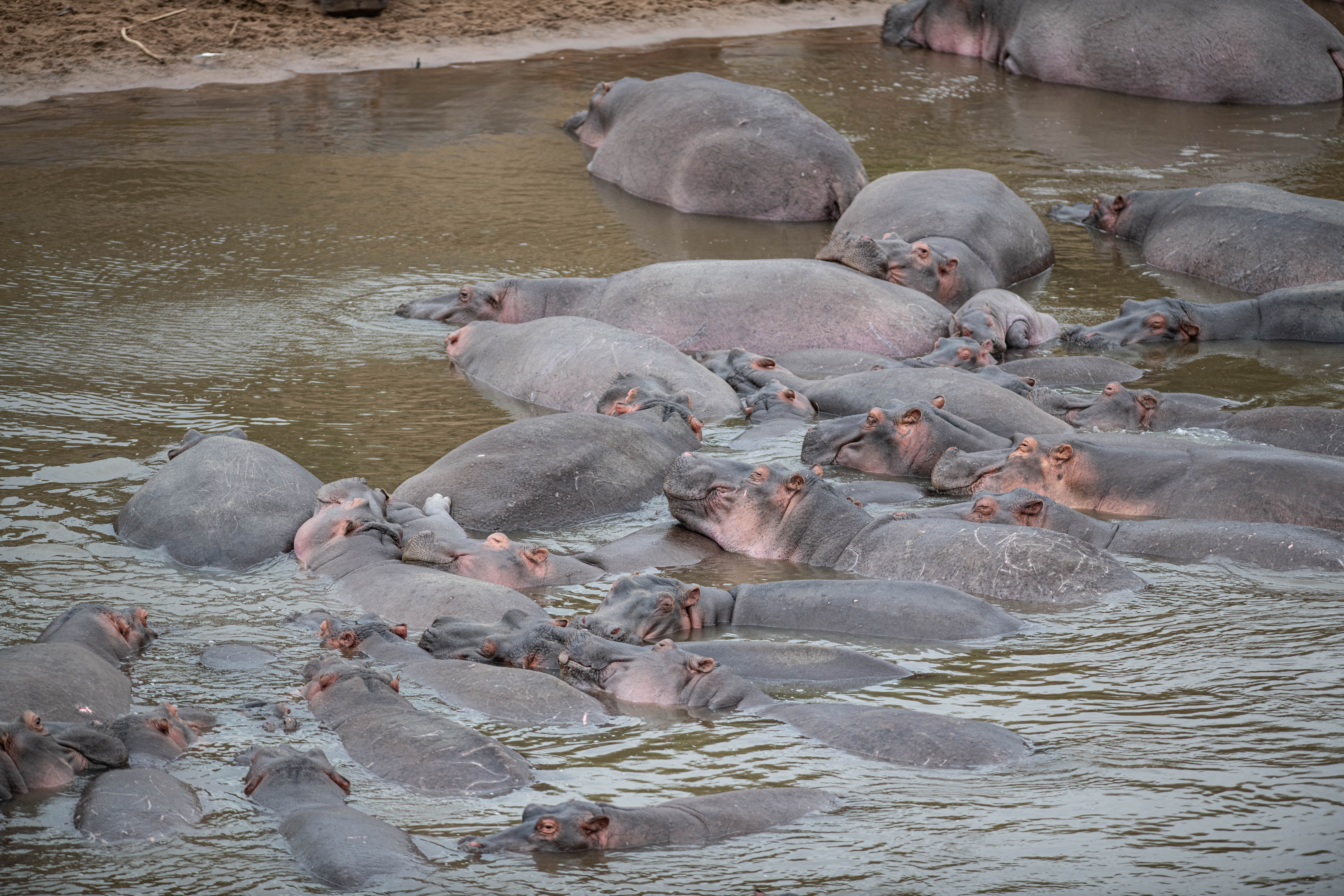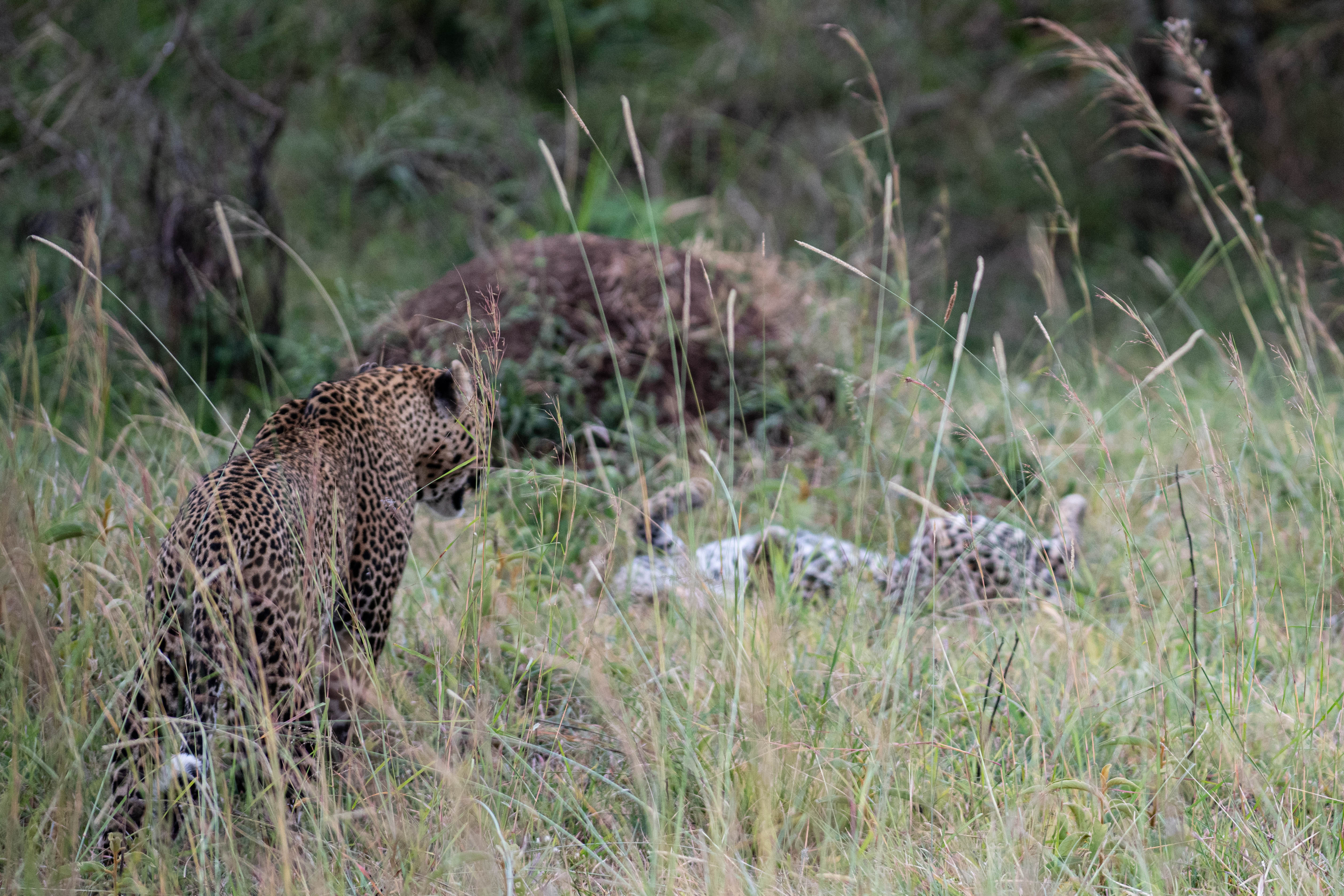 Every summer, millions of wildebeest, zebras, and gazelles migrate across the Mara River to graze on the tall grasses. This is part of a larger cycle that the herd animals follow all year round. Our trip was planned specifically to (hopefully) catch part of the migration into the Maasai Mara. There’s no way to predict when the herds will migrate, but we had several days in the Mara to give it a try! Our first full day game drive was full of lots of animals, but no migration. We started our day off by seeing three (!!!!) leopards, which was unbelievable for two reasons. First, leopards are notoriously difficult to see. They like to hang out in trees, so they are hard to see when you’re on safari. When we went to Tanzania, the only leopard sighting we had was the tail dangling off a tree limb. It was super far away in a tree and even with binoculars it was hard to see anything but its tail. The second reason our sighting was so incredible is that leopards are solitary – they are very rarely seen together. The only time they are spotted together is when they are mating. Even then, it’s only two leopards, so the fact that we saw three together was incredible! I knew we were witnessing something really special when I saw our guide, who has been guiding tours for 20 years, and our driver, who has been doing tours for over 10 years, pull out their phones and record video of the leopards. They were just as excited as we were!