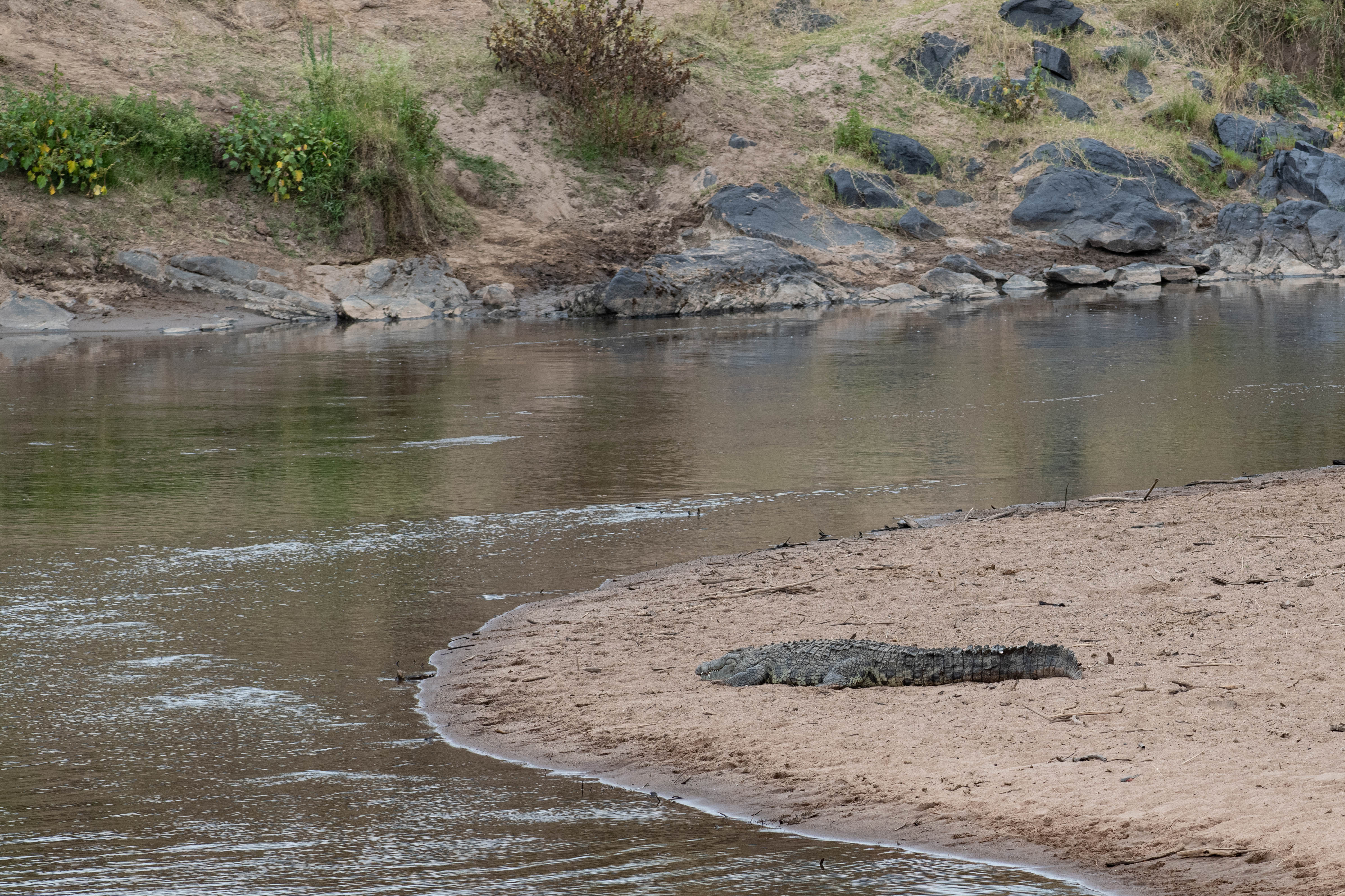 After the leopards, we headed to the bank of the river to see if we could get a glimpse of the migration. We arrived at the bank and there was a herd gathering on the other side. We sat for a bit and waited to see if any would go. None did while we were there, but we did learn a lot about the migration. We learned that the herds build up on the bank and essentially just one has to start down the bank to the river and they will all follow. This was bizarre to me – I would have guessed that it was more orchestrated than that! Evidently, wildebeest are amongst the dumbest animals in the world. It literally just takes one wildebeest or zebra to decide they are thirsty and they move. The rest follow. There’s no assessment of danger – no one looking to see if there are crocodiles or hippos nearby and no one looking to see if there are any big cats skulking around. Just one needs to be a little thirsty!
